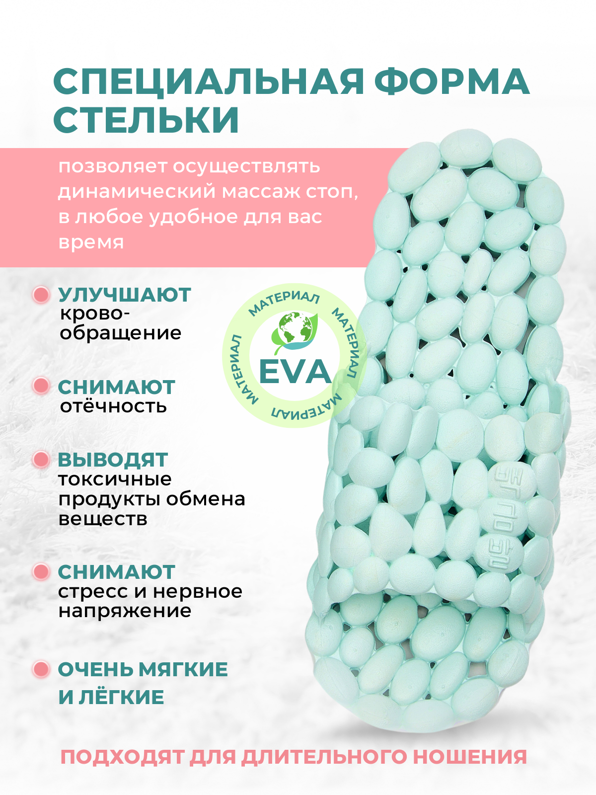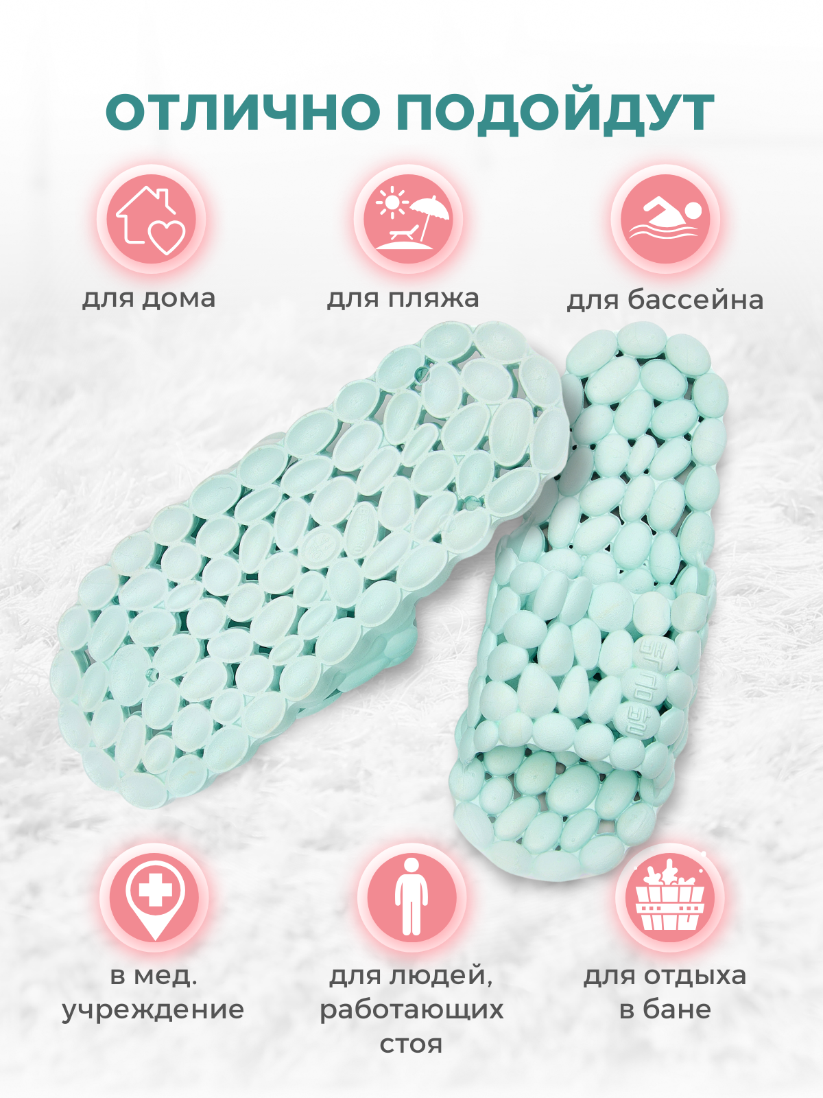 10 цен на Массажные тапочки шиацу Галька, рефлекторные, мятные, р.42-43