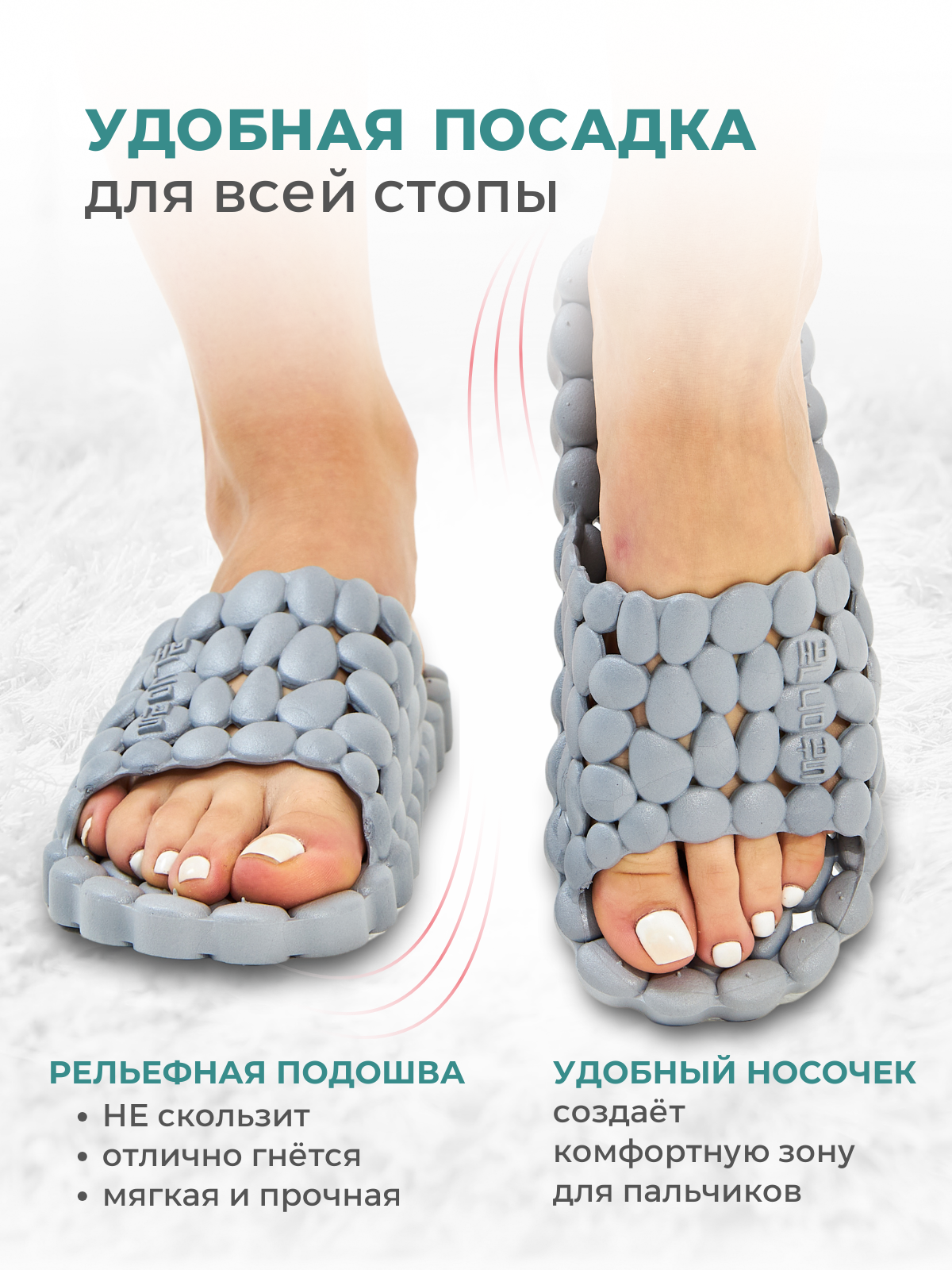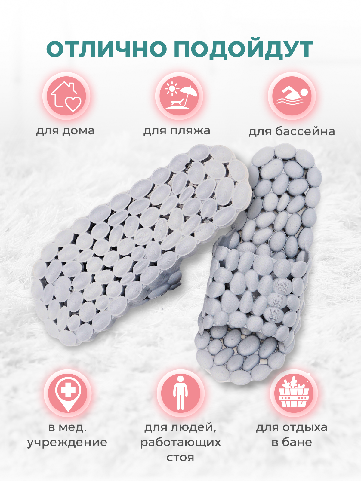 Отзывы на Массажные тапочки шиацу Галька, рефлекторные, темно-серые, р.46-47