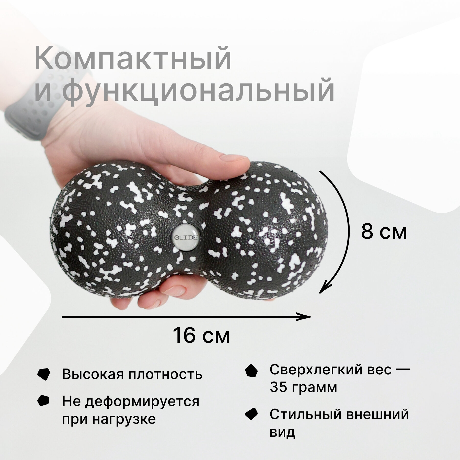 Отзывы на Мячик массажный двойной Glide Roll для пилатеса и йоги. Масажный мяч для МФР, ролик массажный, белый, черный, 16х8см