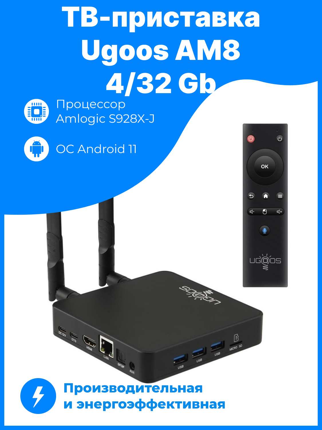 10 цен на Смарт ТВ приставка Ugoos AM8 4/32Gb (WiFi-6E) c Bluetooth пультом Amlogic 928x-j