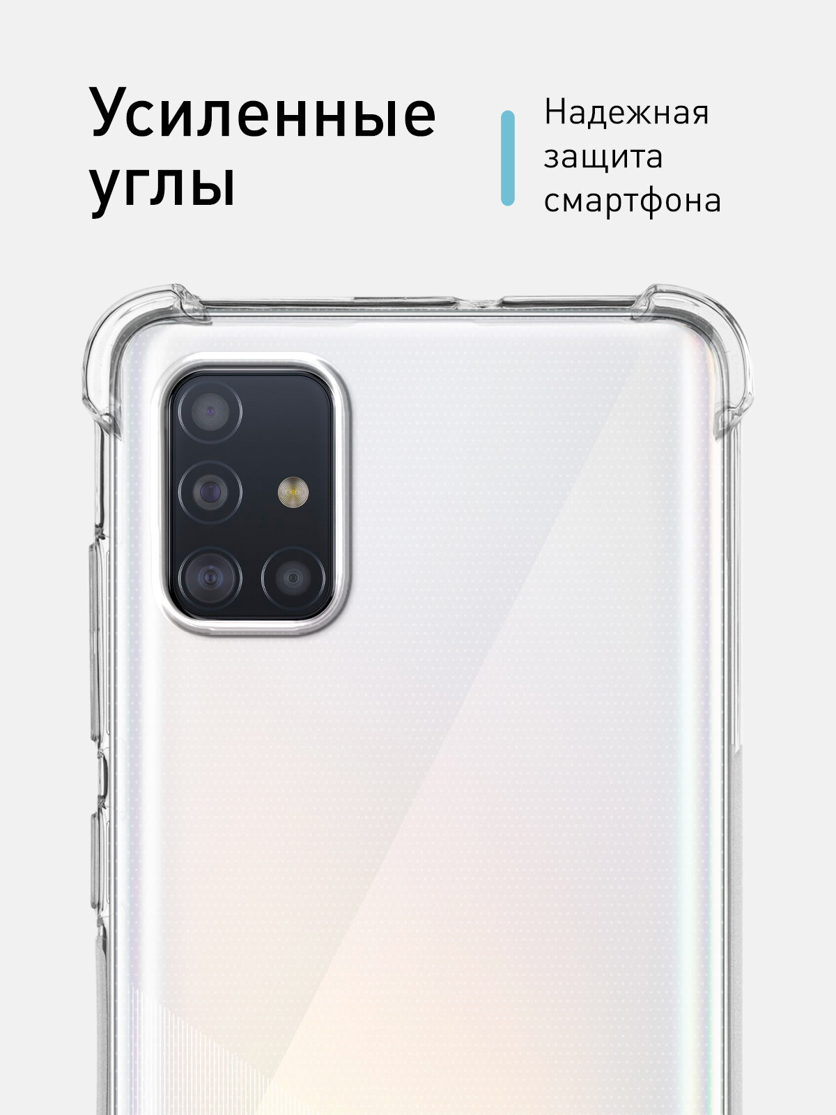 Противоударный чехол ROSCO для Samsung Galaxy A51 (Самсунг Галакси А51) силиконовый с усиленными углами и бортиком (защитой) модуля камер, прозрачный 297 ₽