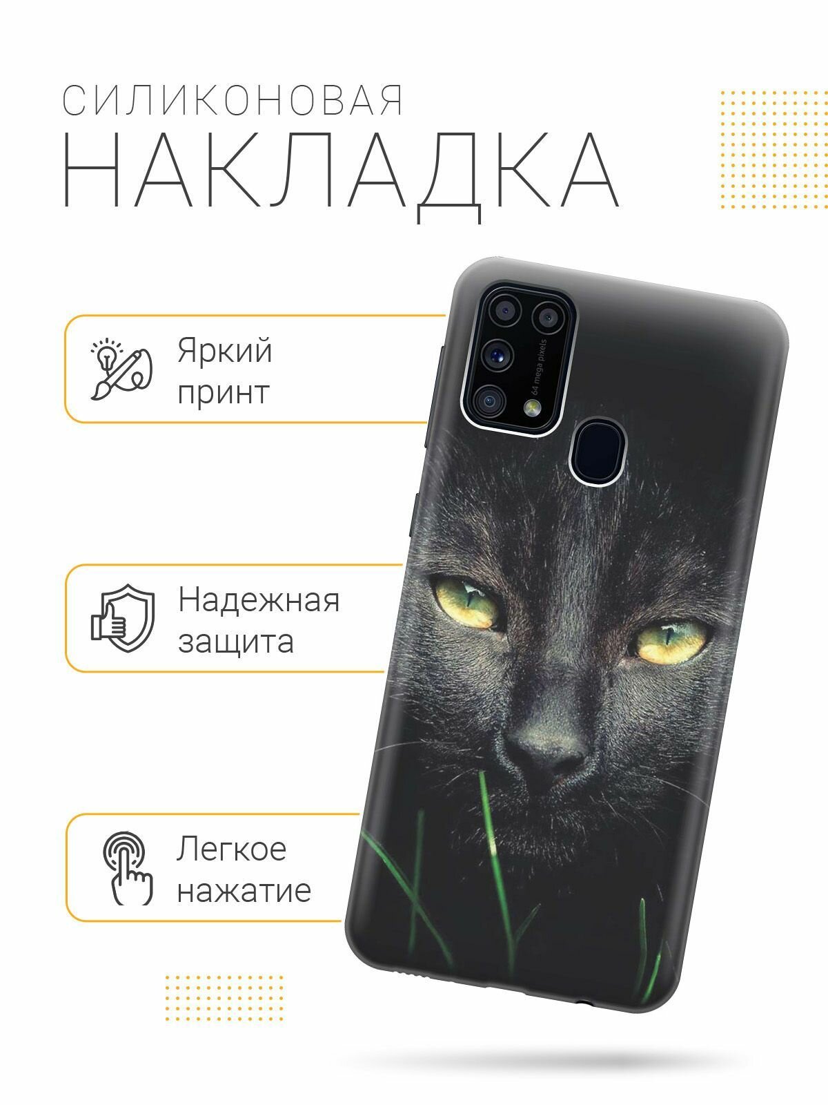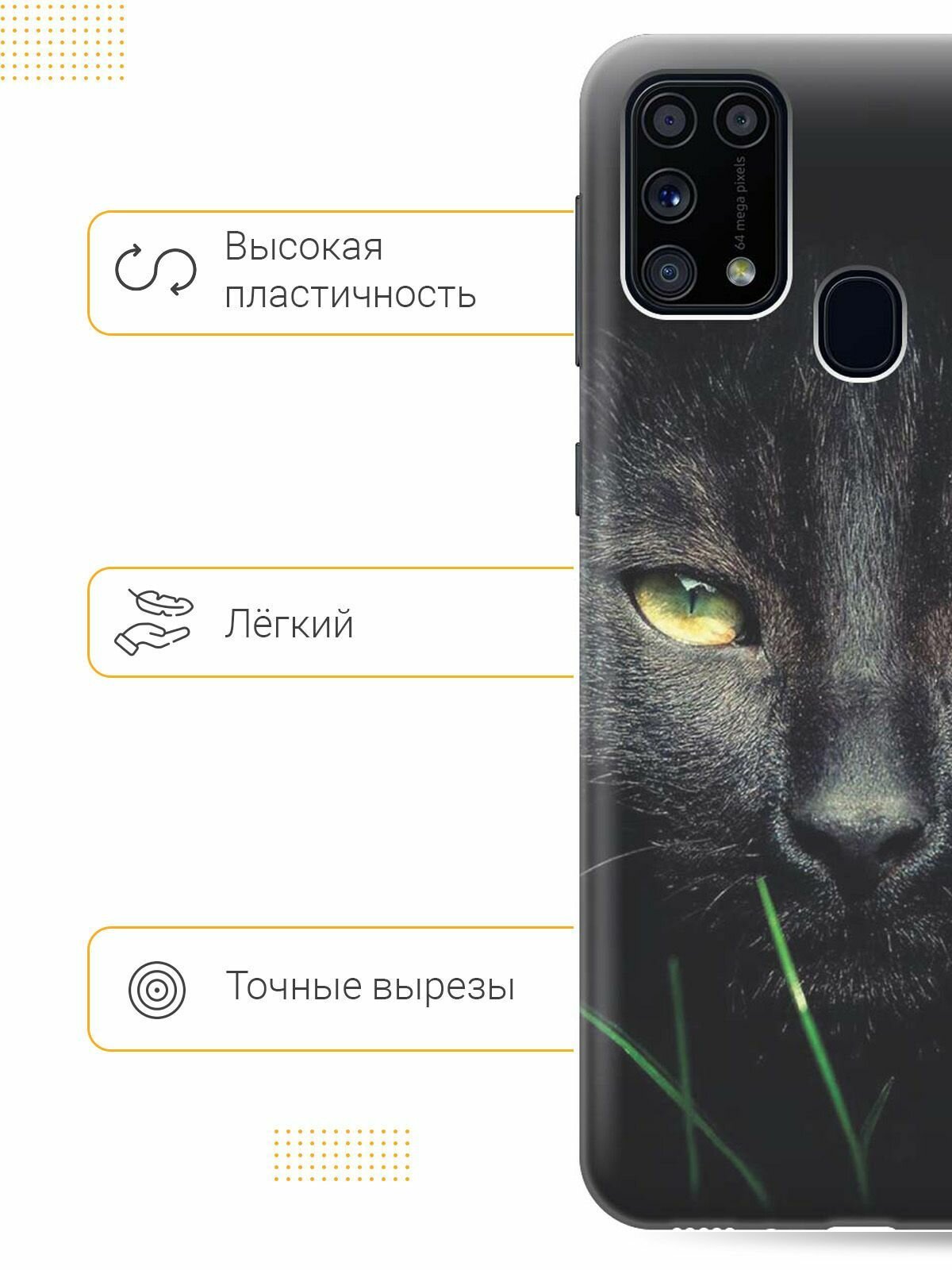 Отзывы на Ультратонкий силиконовый чехол-накладка для Samsung Galaxy M31 с принтом "Кошка в темноте"