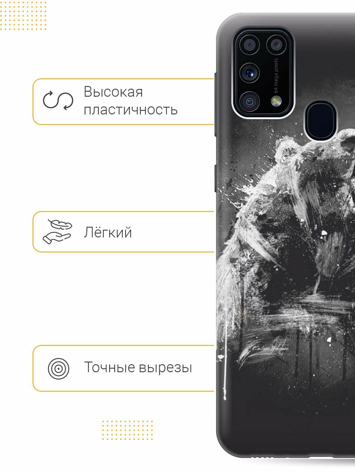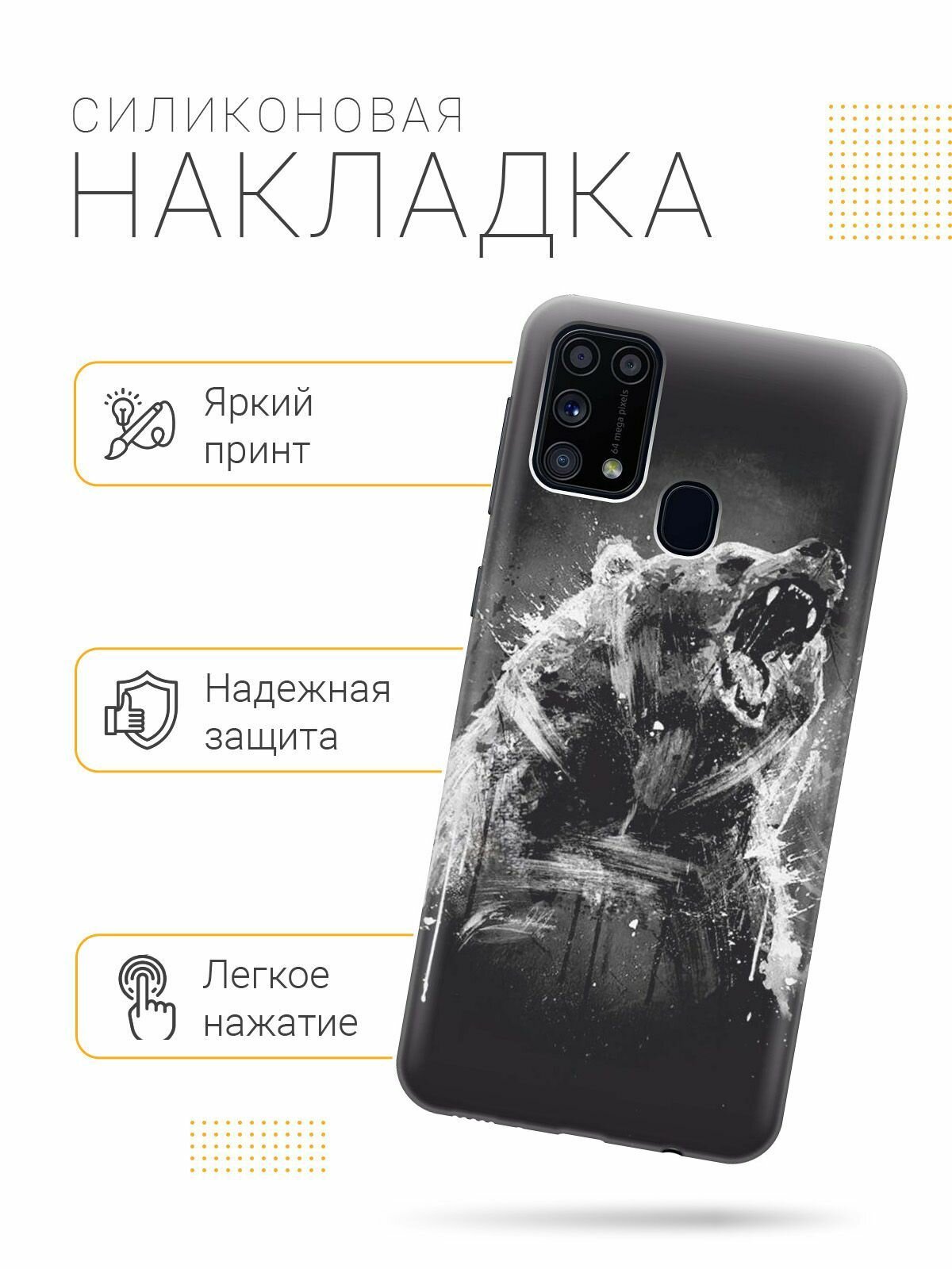Отзывы на Ультратонкий силиконовый чехол-накладка для Samsung Galaxy M31 с принтом "Разъяренный медведь"