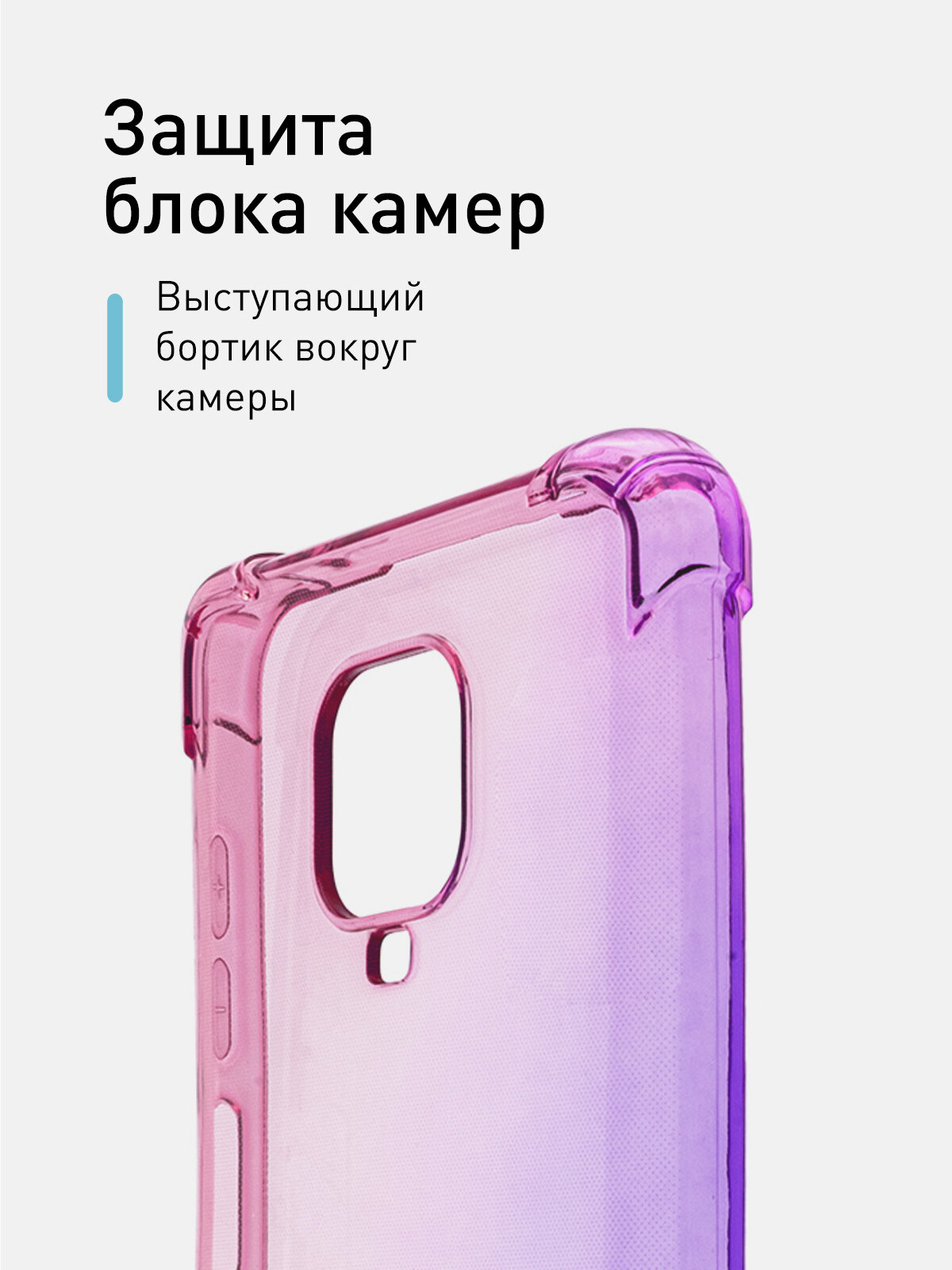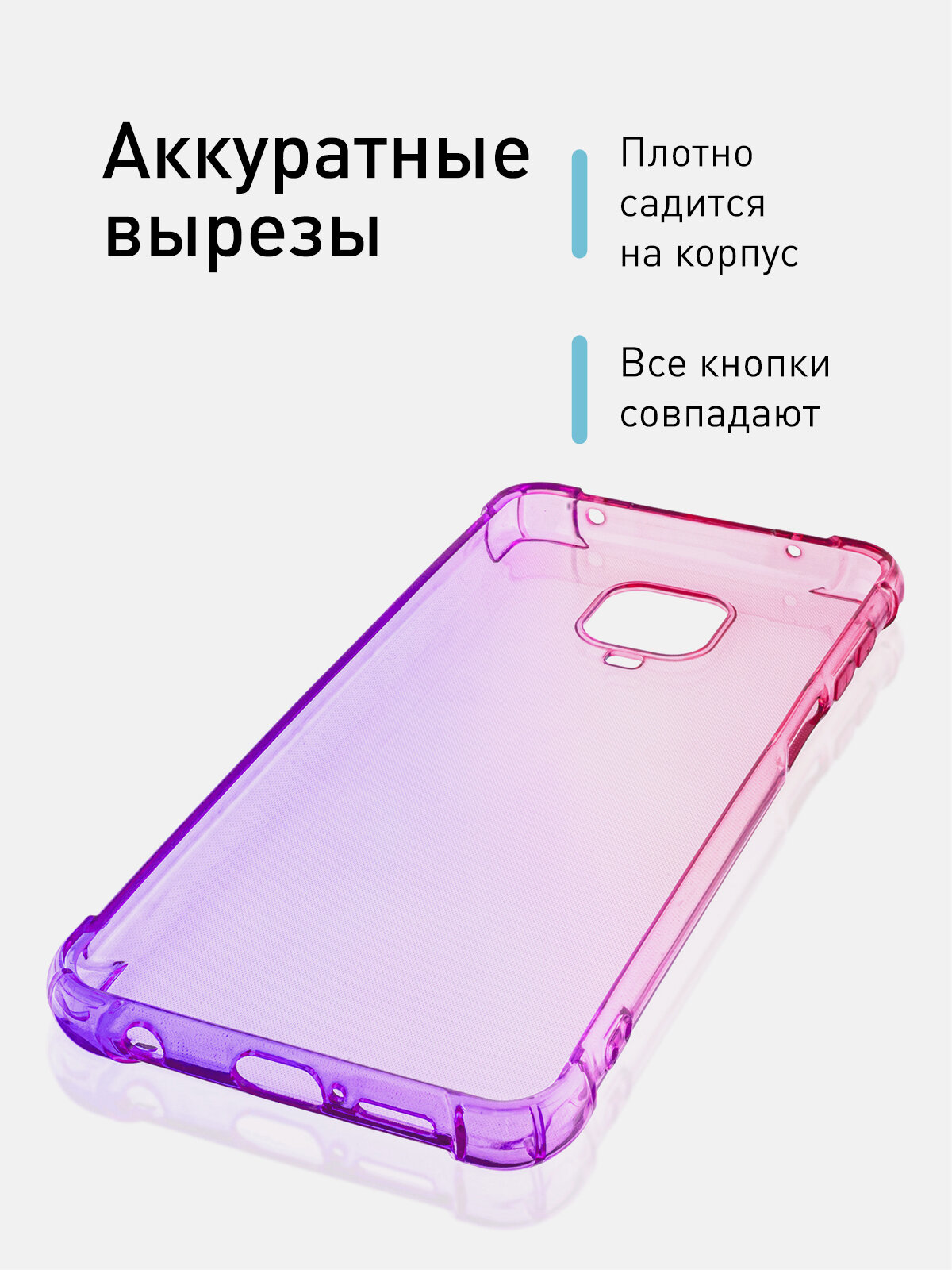 Отзывы на Противоударный силиконовый чехол Rosco на Xiaomi Redmi Note 9 Pro и Note 9S (Сяоми Редми Ноут 9С и 9 Про), прозрачный розово-фиолетовый