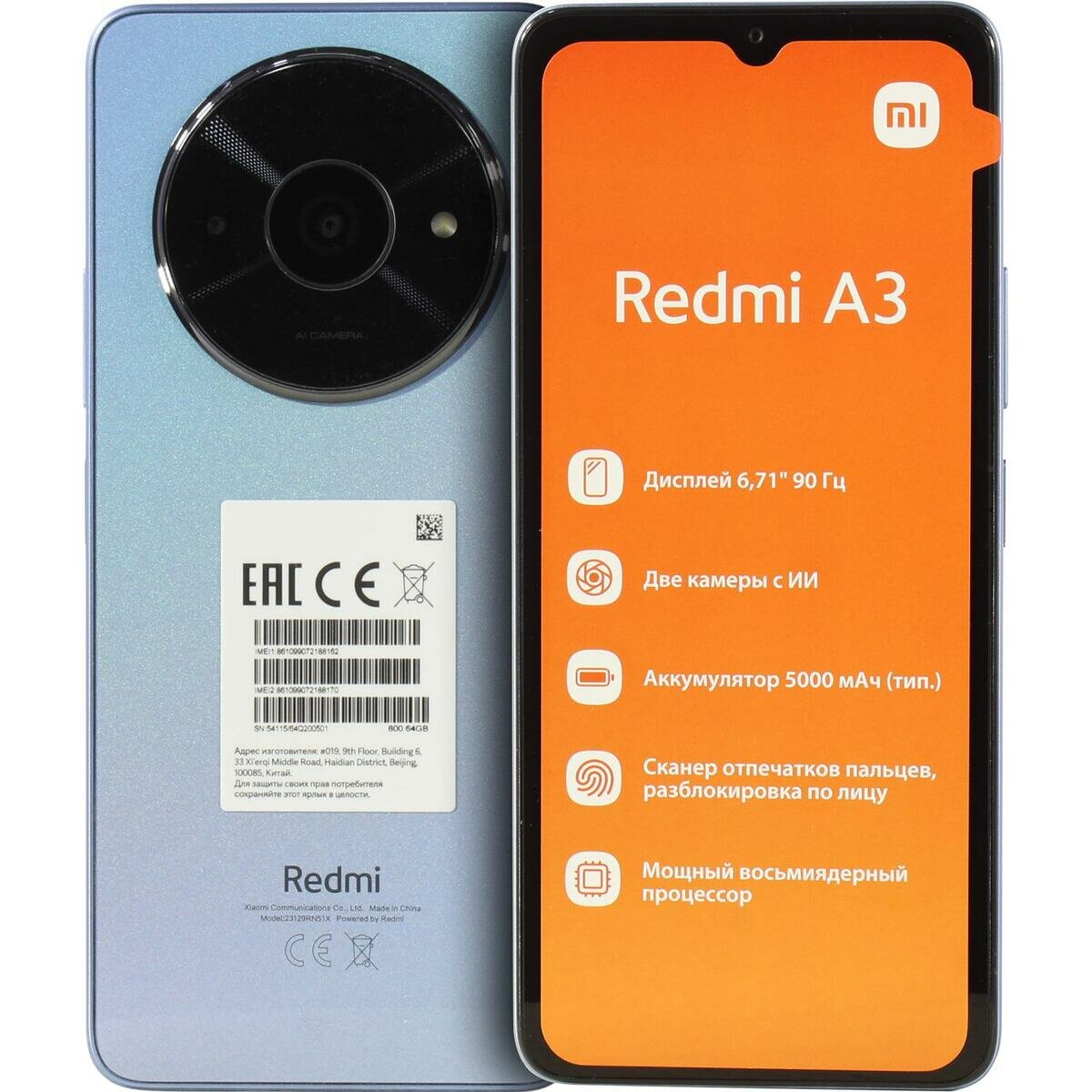 Смартфон Xiaomi Redmi A3 3/64 ГБ RU, Dual nano SIM, голубой