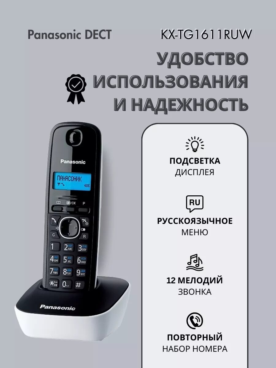 Беспроводной телефон DECT белый KX-TG1611 RUW информация: