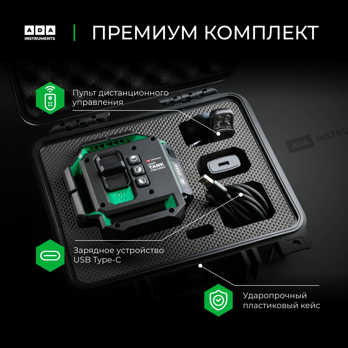 Лазерный уровень-нивелир ADA LaserTANK 3-360 GREEN Basic Edition информация: