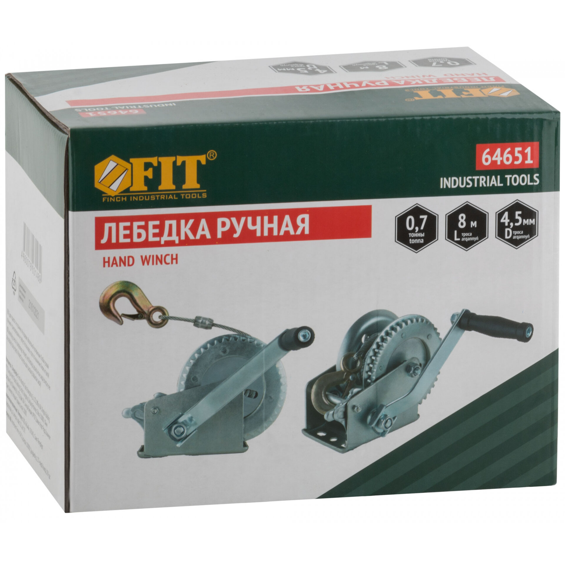 Лебедка барабанная 0.7т L=4.5м тросовая FIT информация: