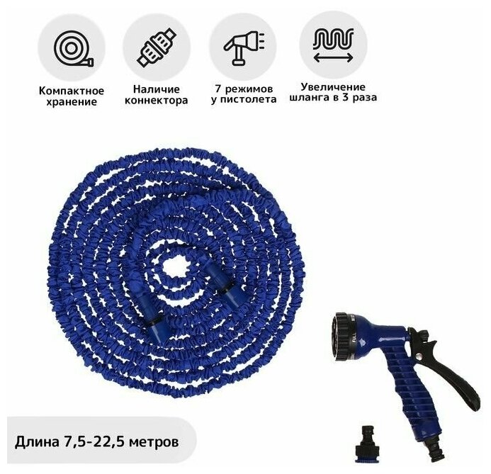 Шланг поливочный растягивающийся от 7,5 до 22,5 м, латекс, быстросъёмный, с поливочным пистолетом и штуцером, Greengo информация: