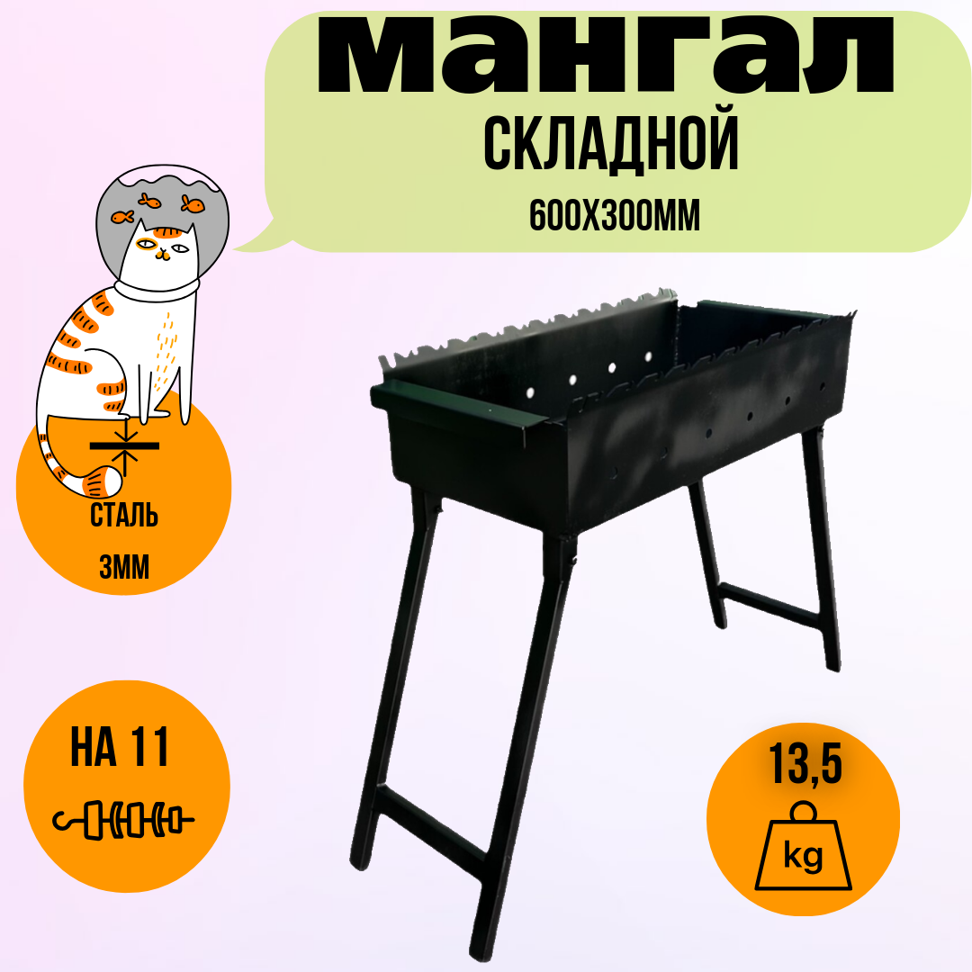 10 цен на Мангал складной 600х300 мм, сталь 3 мм, на 11 шампуров