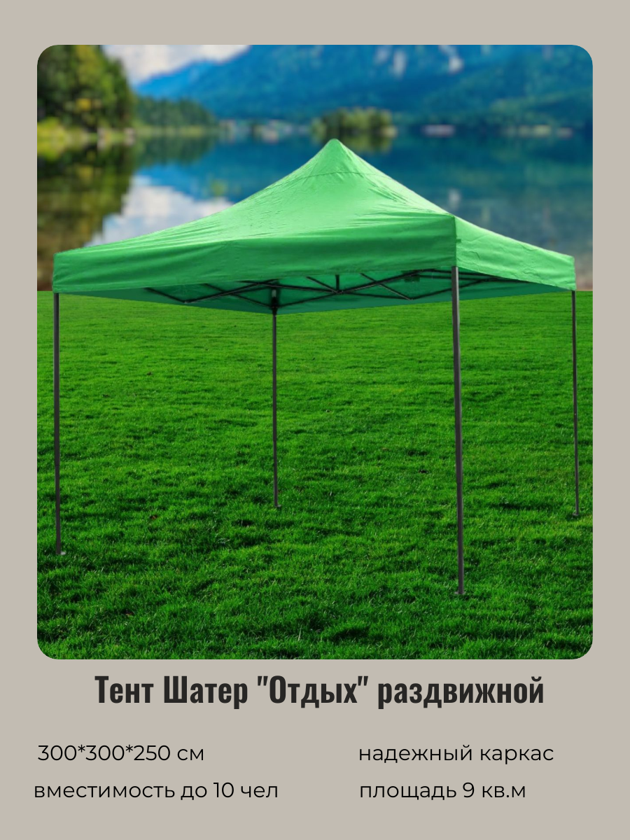 Шатер туристический, шатер для дачи, раздвижной 3*3*2,5м зеленый "Отдых" информация:
