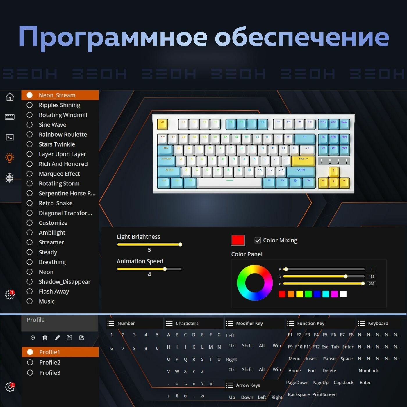 Беспроводная клавиатура Royal Kludge RK71 RGB Белая/зеленая (красные свитчи/RK Red) 6 449 ₽