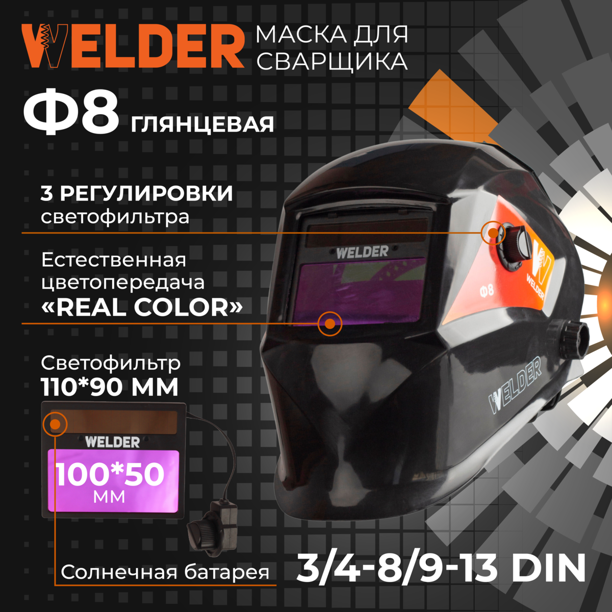 Маска сварочная WELDER ULTRA Ф8 Хамелеон 98x53 мм, DIN 4/9-13 (Внешняя регулировка) информация: