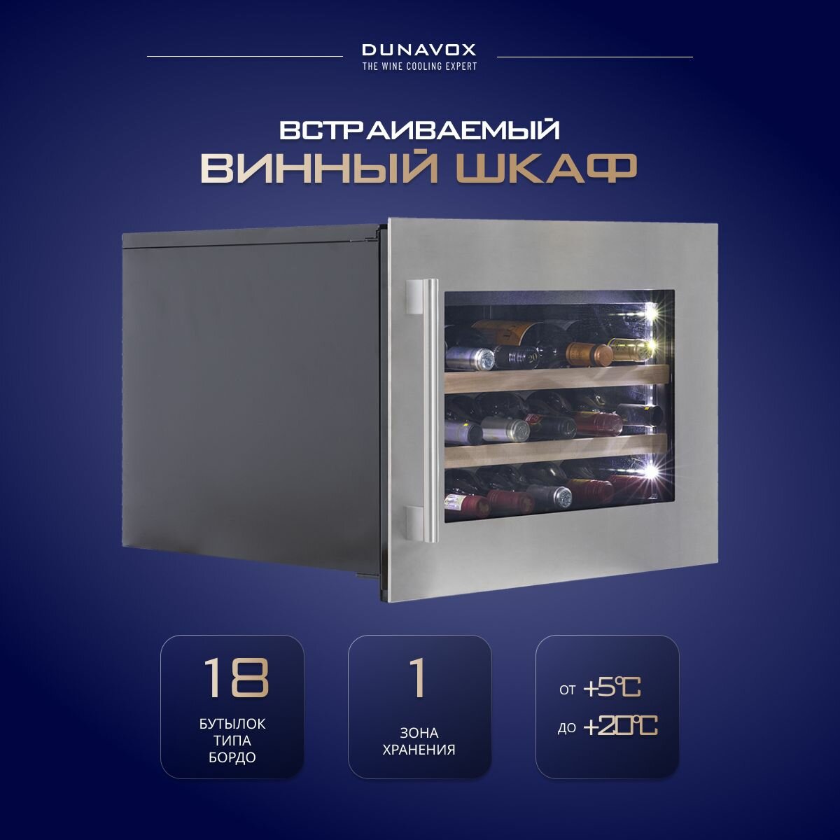 Компрессорный встраиваемый винный шкаф Dunavox DAVS-18.46SS информация: