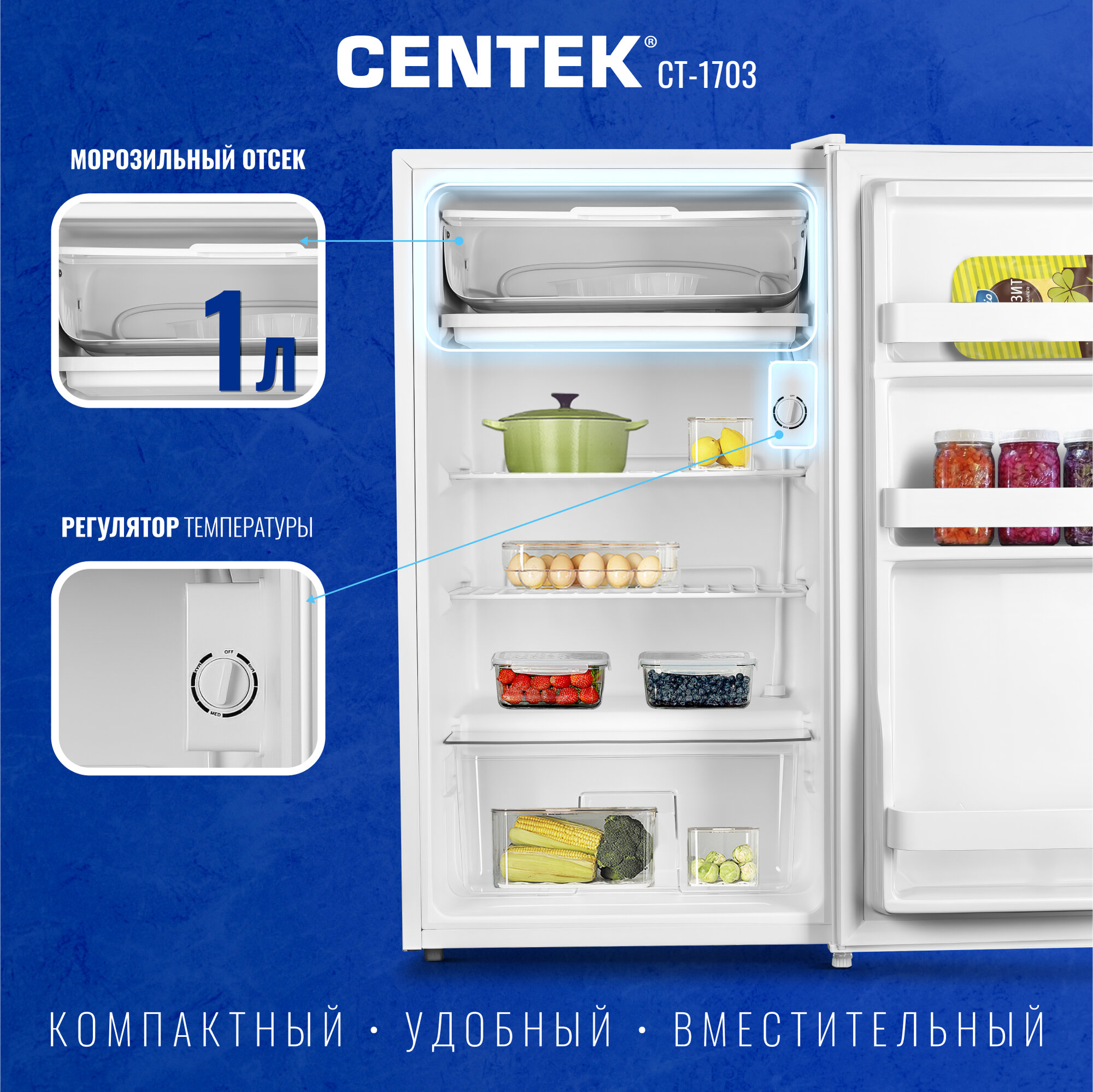 10 цен на Холодильник маленький с морозилкой CENTEK CT-1703: 94л (93л/1л), 3 полки, класс A+, 42 дБ