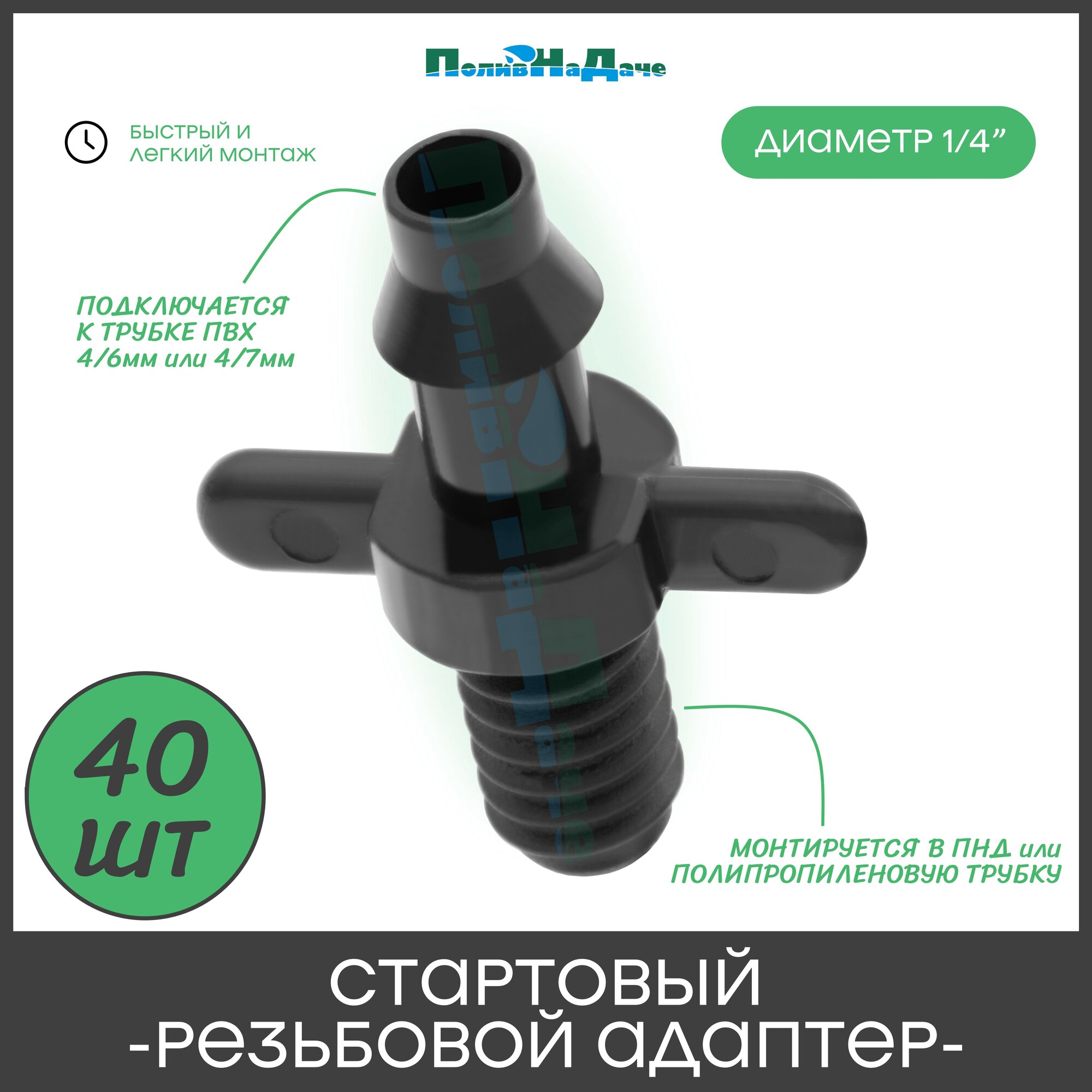 Стартовый резьбовой адаптер для трубки ПВХ 4/6мм и 4/7мм (1/4 дюйма) - 40 штук информация: