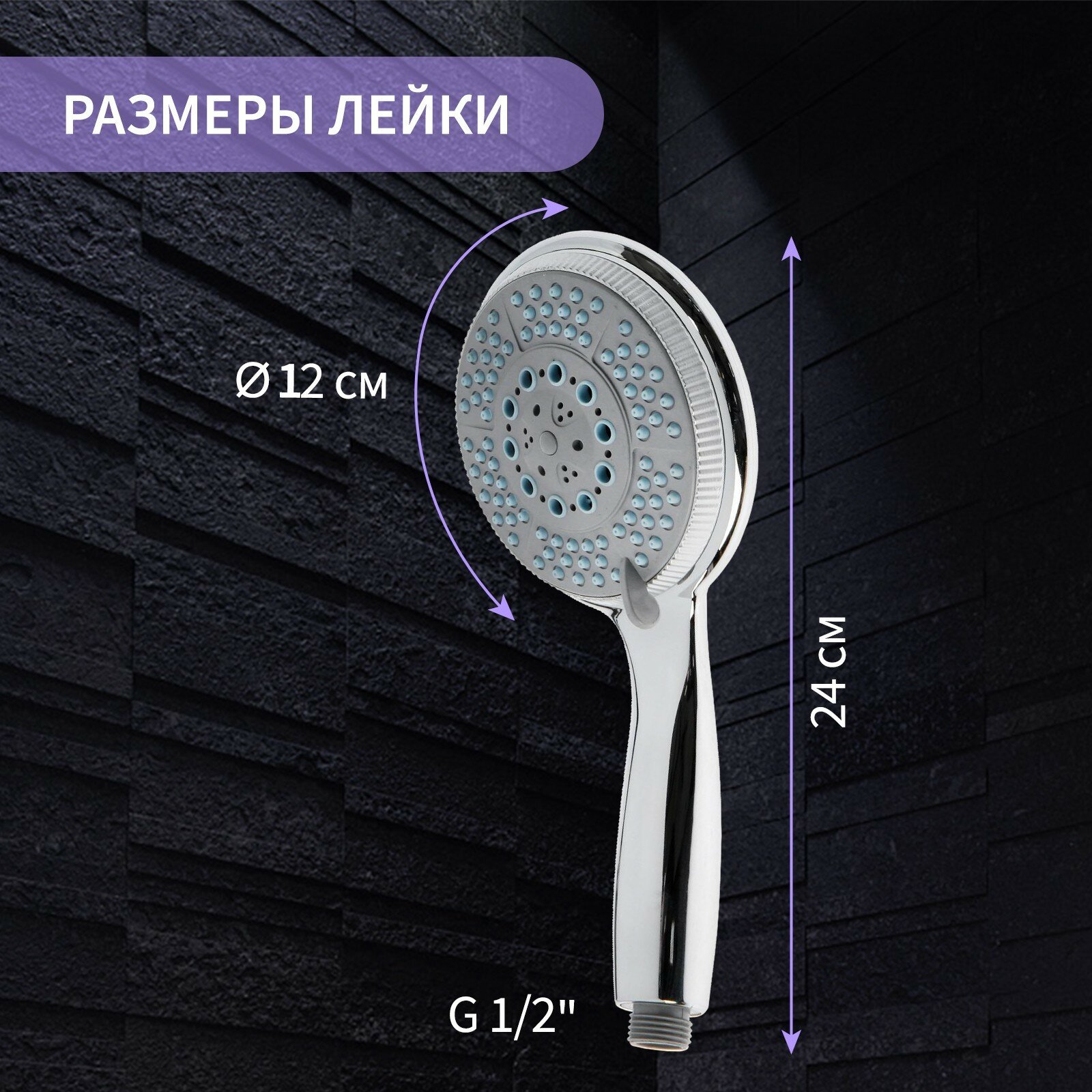 Лейка для душа ZEIN Z4087, микроточки, кнопка "стоп", вентилятор, спираль, фиолетовый/хром 604 ₽