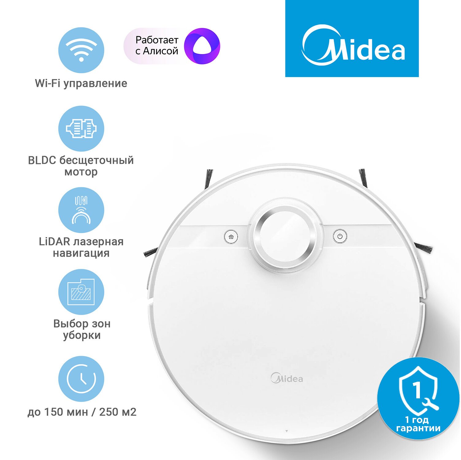 Робот-пылесос с Wi-Fi Midea VCRM7, белый, LiDAR, сухая и влажная уборка, турбо-щетка, HEPA-фильтр