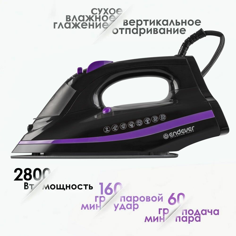 Утюг с отпаривателем с сенсорным управлением и автоотключением Endever Delta-230, 2800 Вт, 300 мл бак для воды информация:
