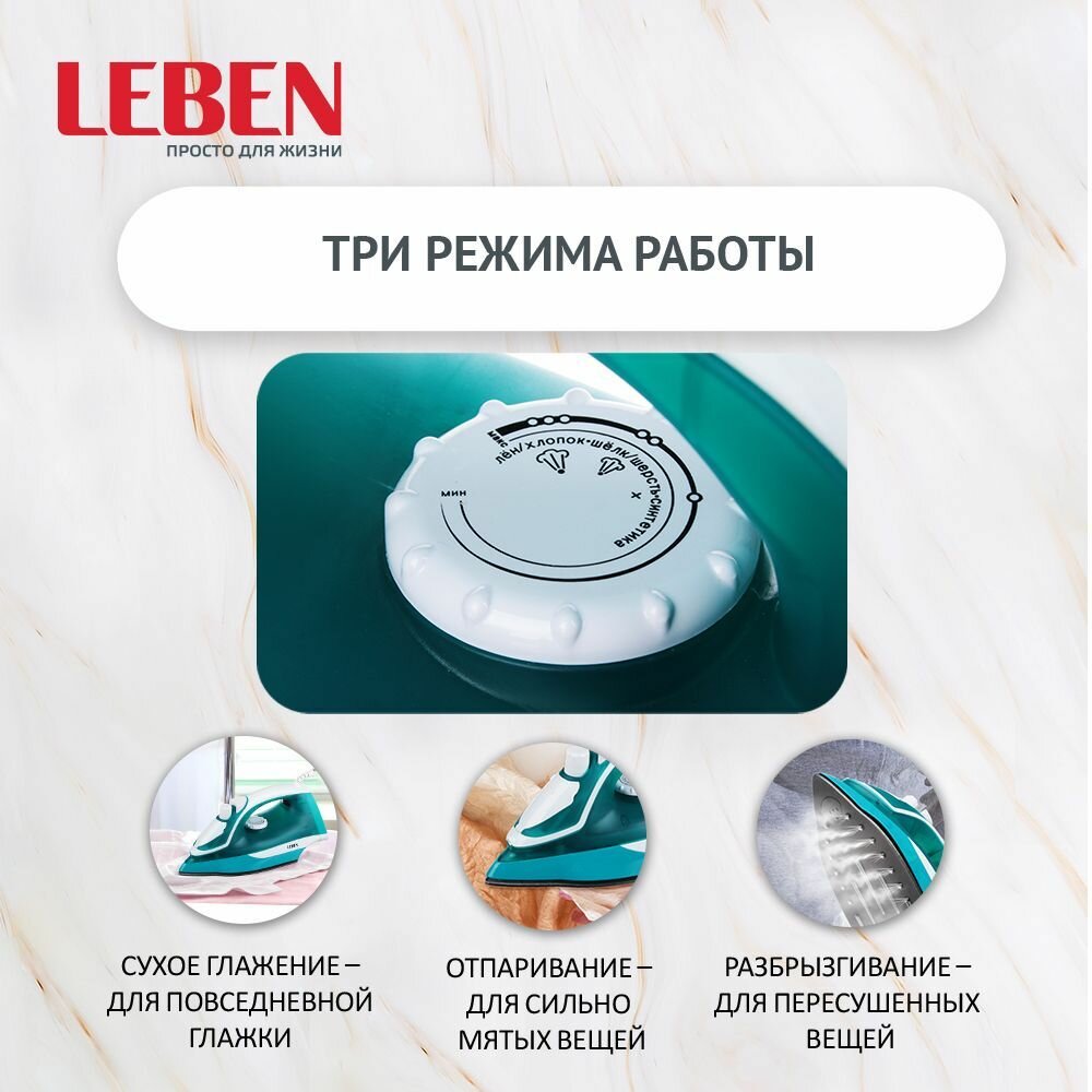 Отзывы на Утюг с отпаривателем LEBEN 2200Вт, подошва с тефлоновым покрытием, функция парового удара, голубой 249-007