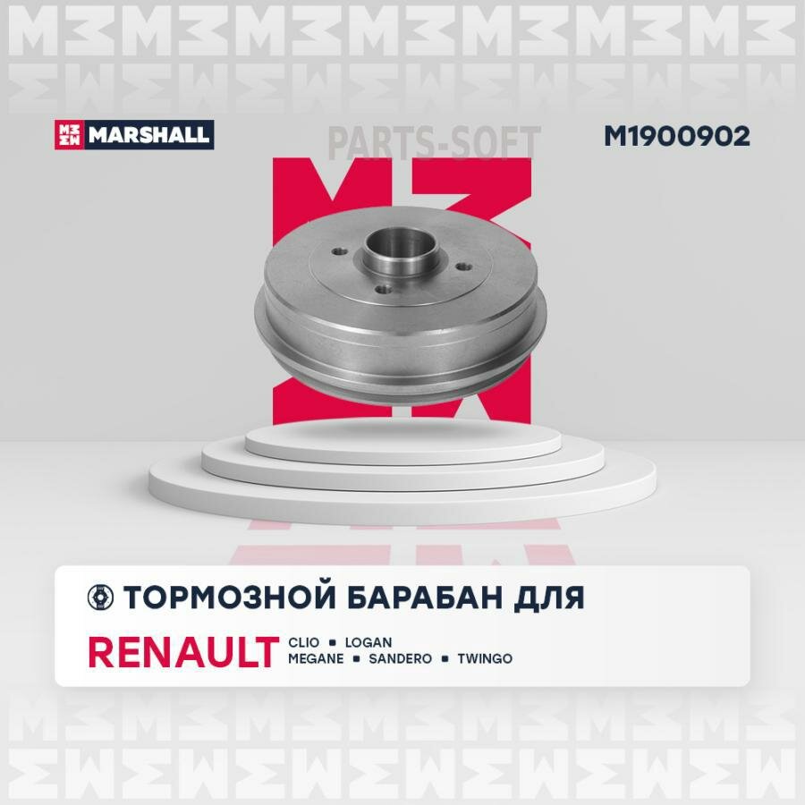 MARSHALL M1900902 Тормозной барабан задн. Renault Clio II 98- / Logan I 04- / Megane I 95- / Sandero I 09- / Twingo I 93- () | зад прав/лев |