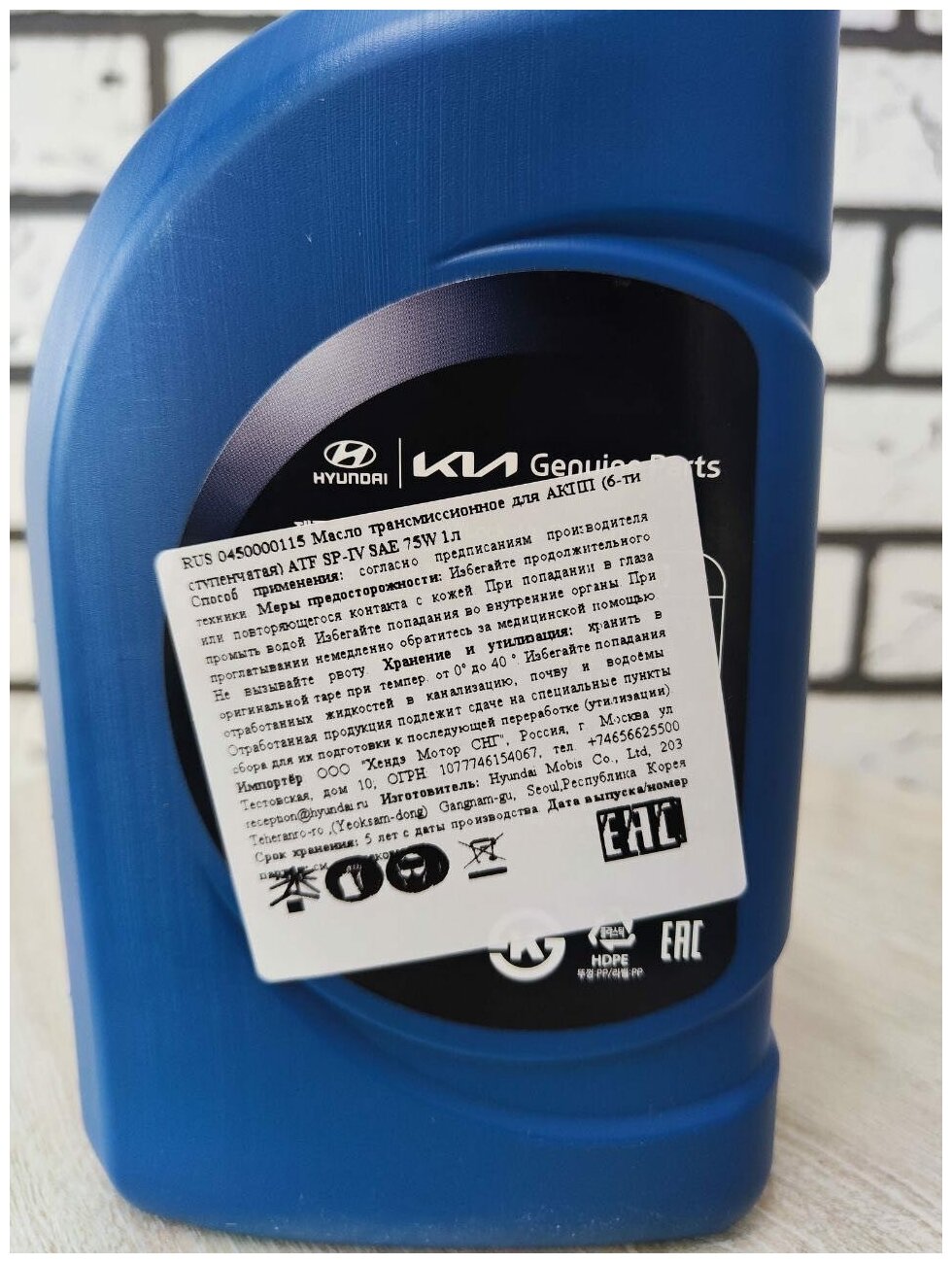 Трансмиссионное масло Hyundai ATF SP4, 75 W, оригинальное, 2 литра 3 614 ₽