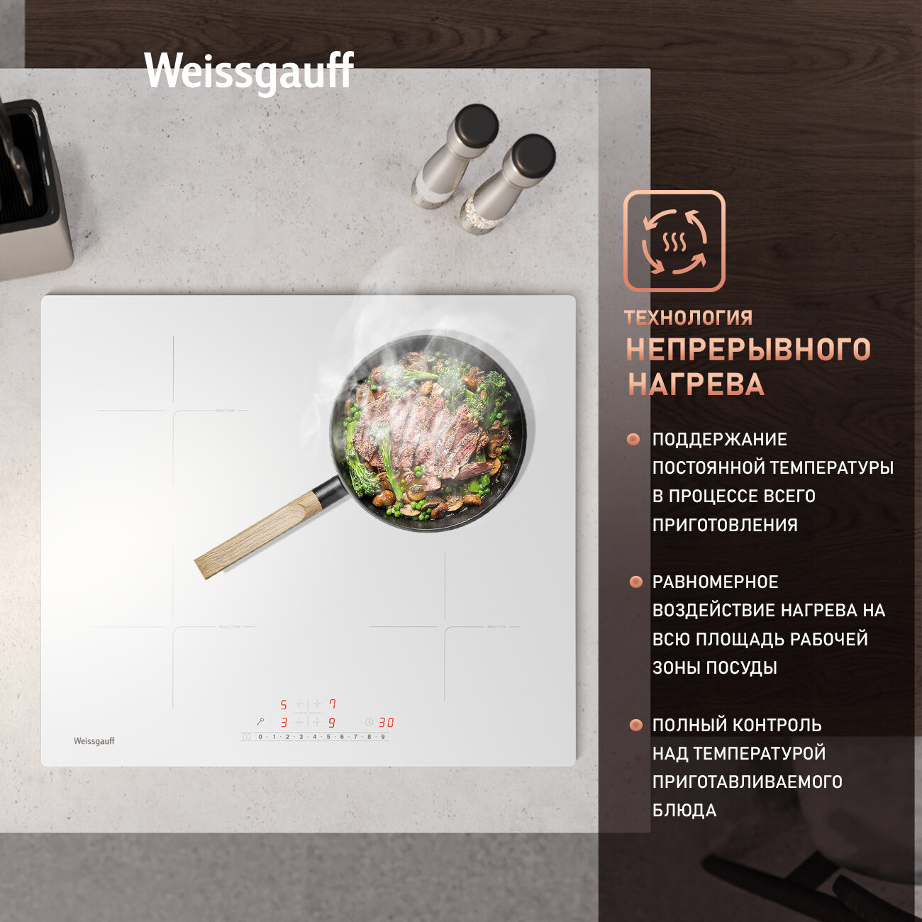 10 цен на Индукционная варочная панель с инвертором и слайдером Weissgauff HI 632 W, Индикация остаточного тепла, 59 см ширина