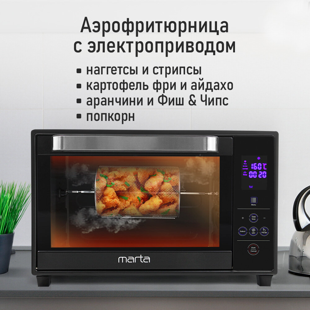 Мини-печь MARTA MT-EO4288A (30 литров, сенсор+конвекция+шашлычница+вертел) черный жемчуг