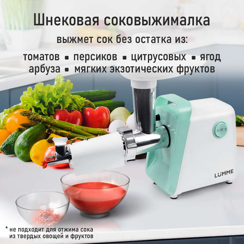10 цен на Мясорубка LUMME LU-MG2113A белый/ментол 8 в1 ,3500 Ватт