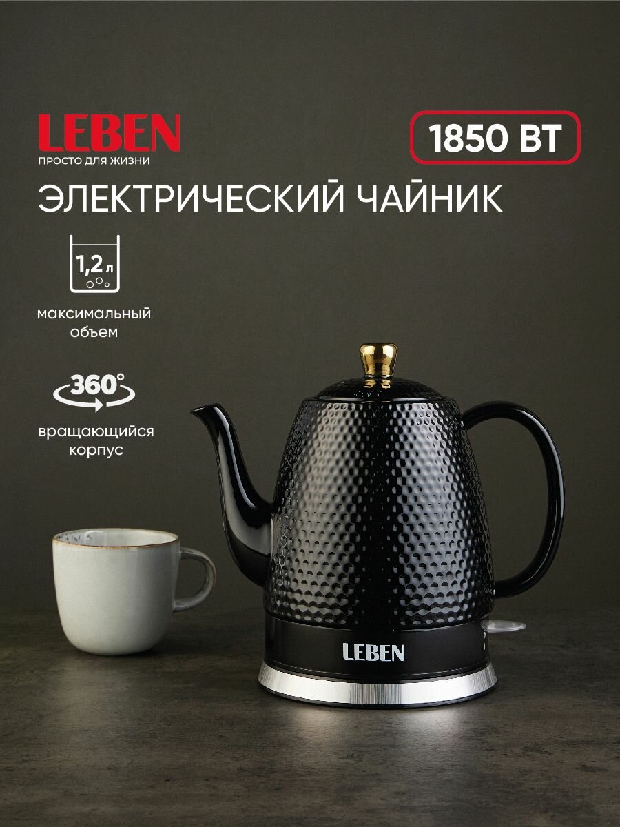 Чайник электрический керамический 1,2 л LEBEN, черный информация: