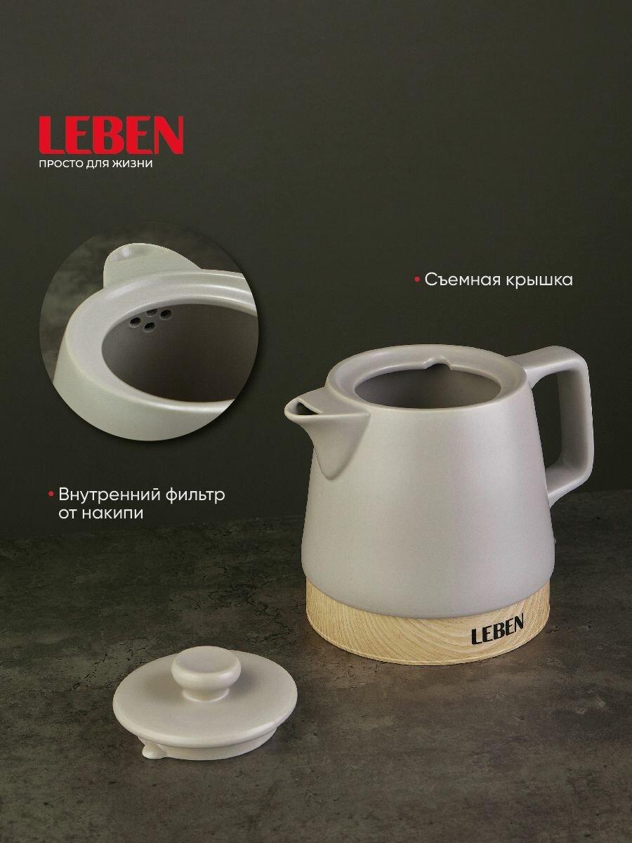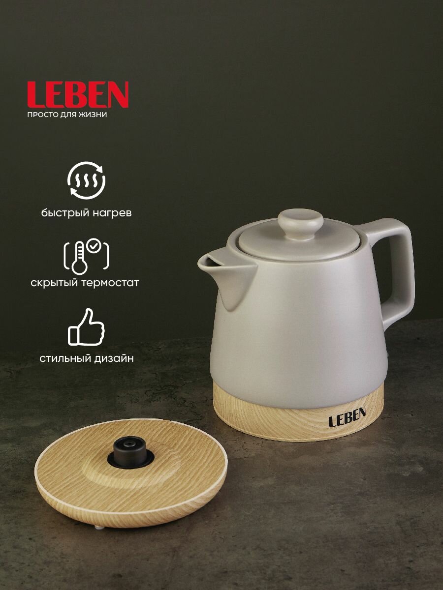 Чайник электрический керамический 1 л LEBEN, бежевый информация: