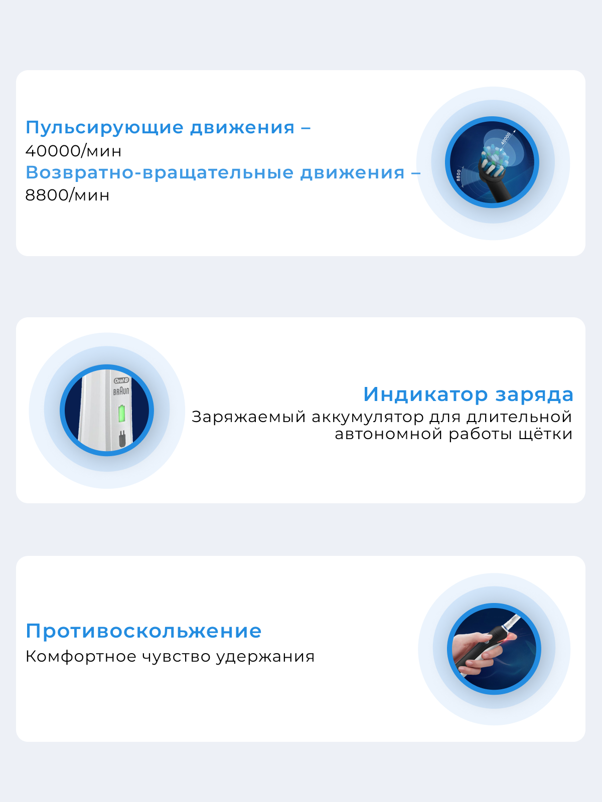 | Дополнительная информация | связь щетки через интерфейс Bluetooth с мобильным приложением Oral-B App; подходит для детей с 3-х лет |
