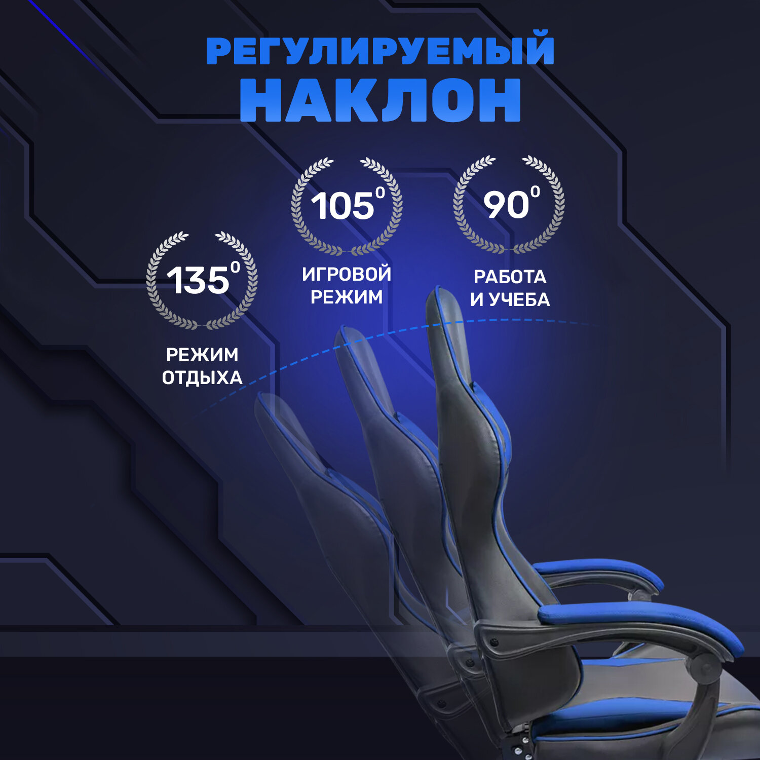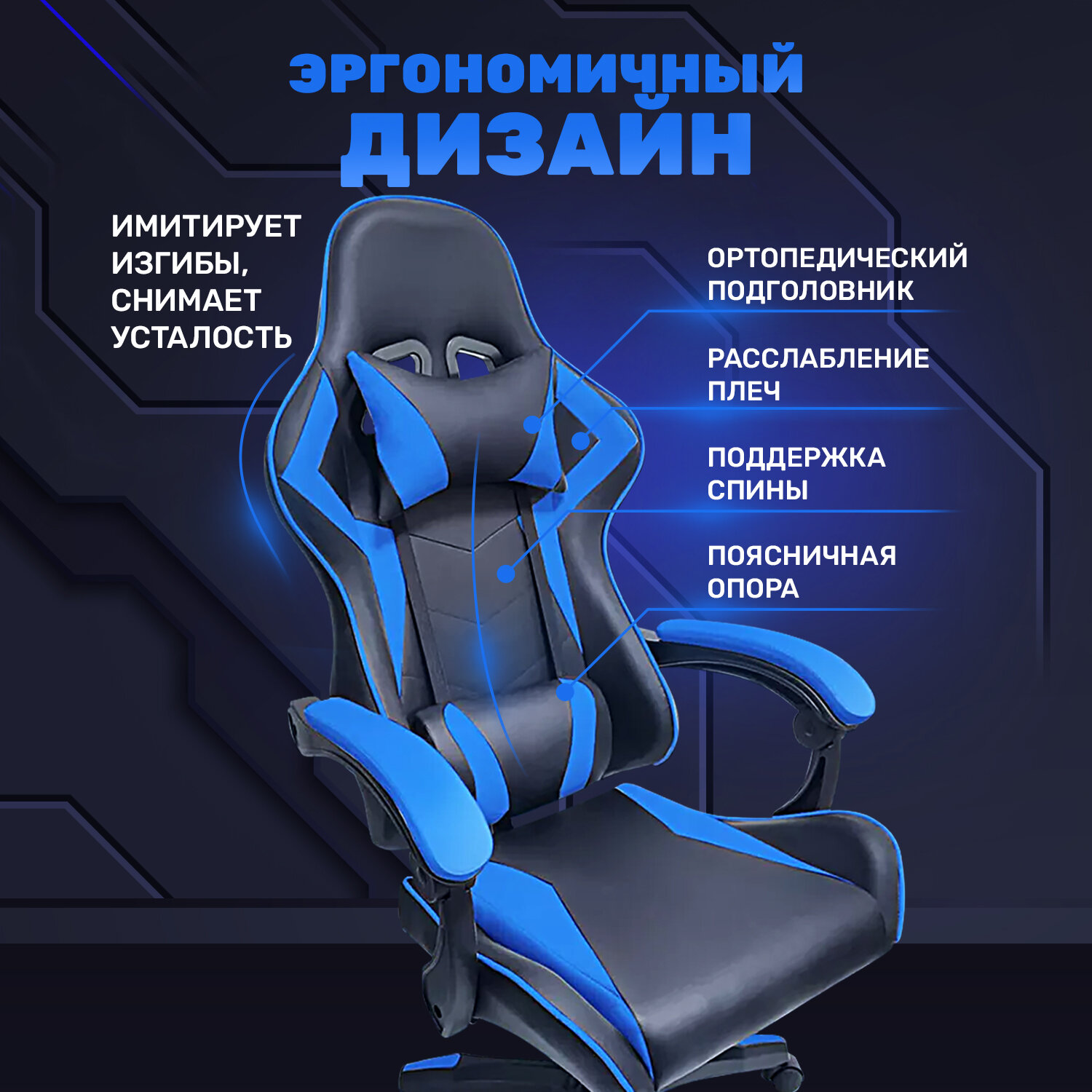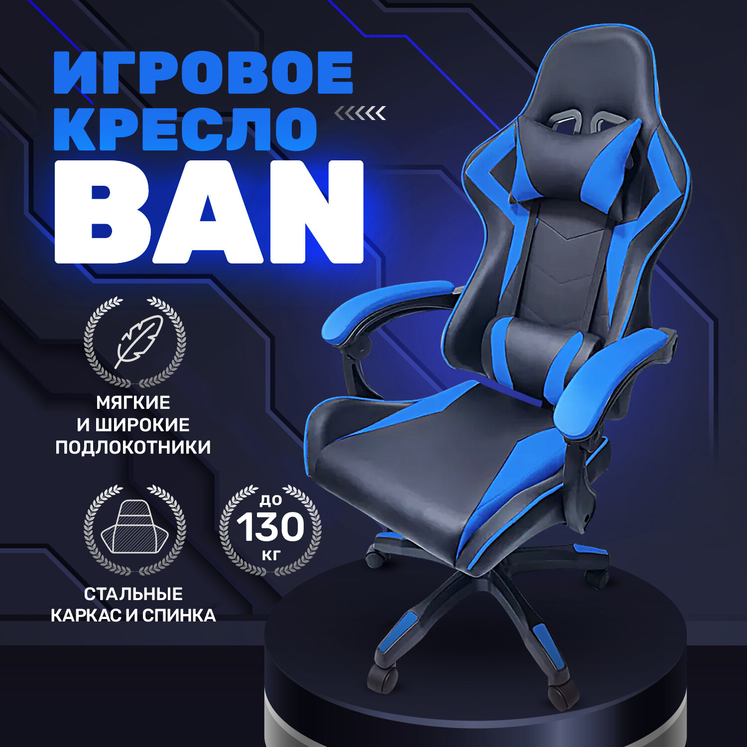 Игровое геймерское кресло на колесиках BYROOM Game BAN blue HS-5010-BL кожаное крутящееся. Компьютерный стул для геймера с ортопедической высокой спинкой для игр и работы на пк информация: