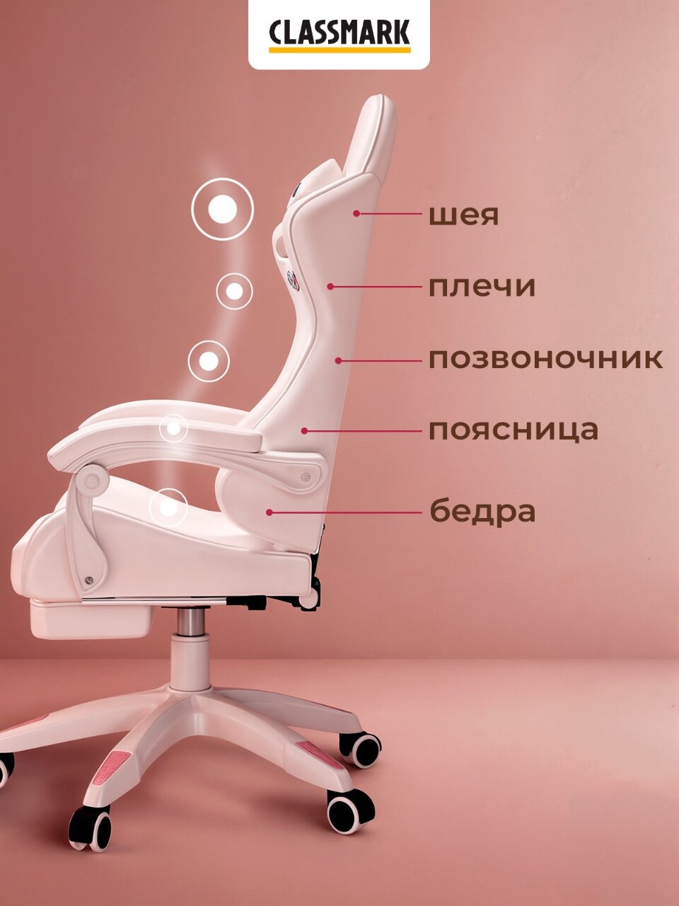 10 цен на Кресло компьютерное игровое геймерское Classmark FT-1502 офисное с подушками для спины и шеи на колесиках, бело-розовое