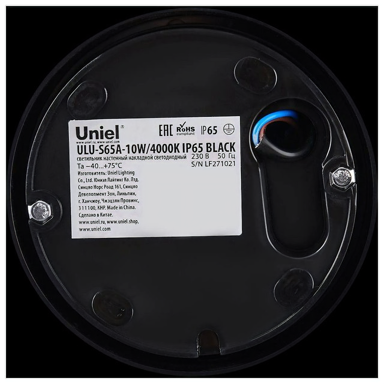 | Подробная комплектация | Светильник уличный настенный UNIEL 10Вт 4000K IP65 черный |
