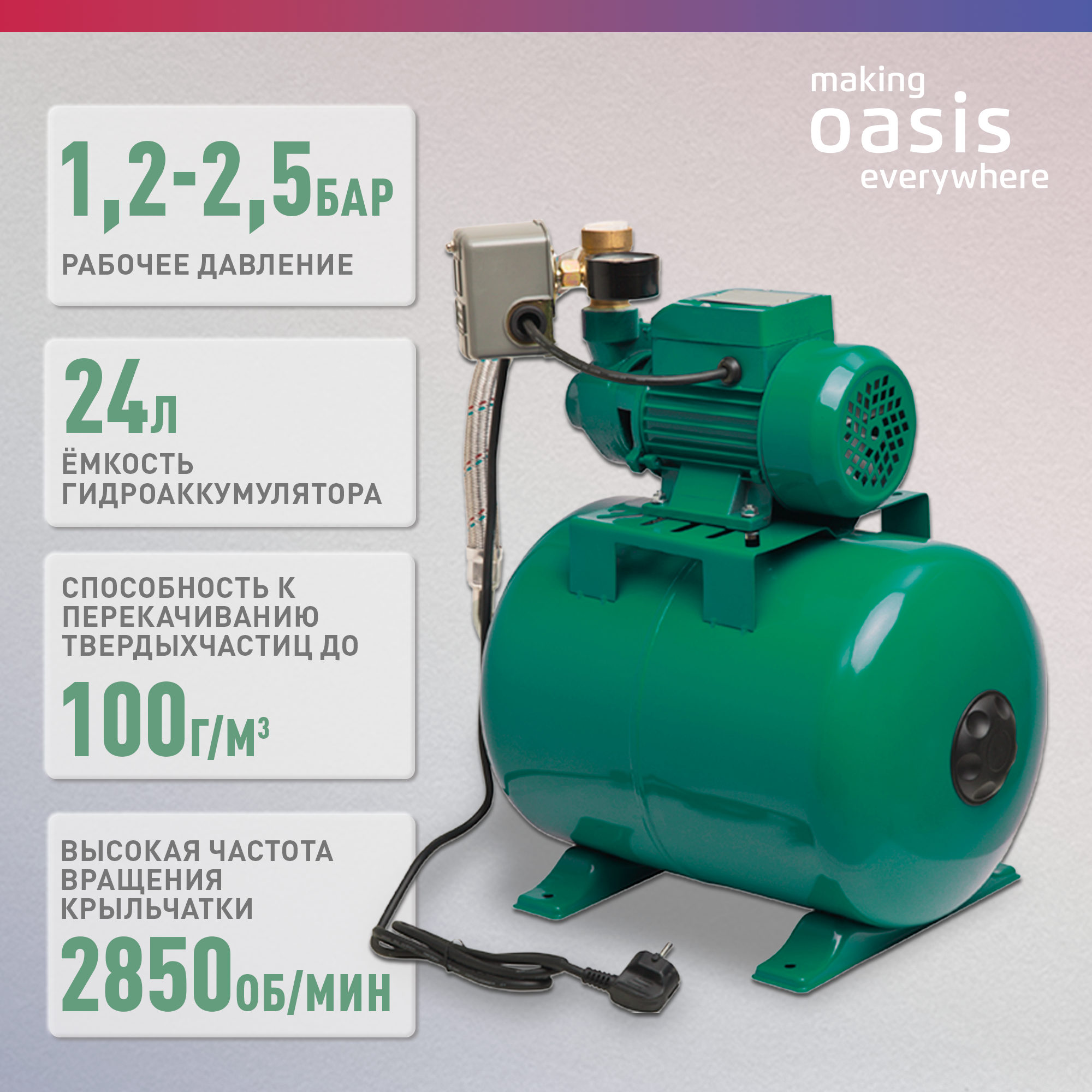 Насосная станция для воды making Oasis everywhere S-40/36СV-24, 370 Вт, 40 л/мин, напор 36 м, бак 24 л, насос водяной поверхностный для дома информация:
