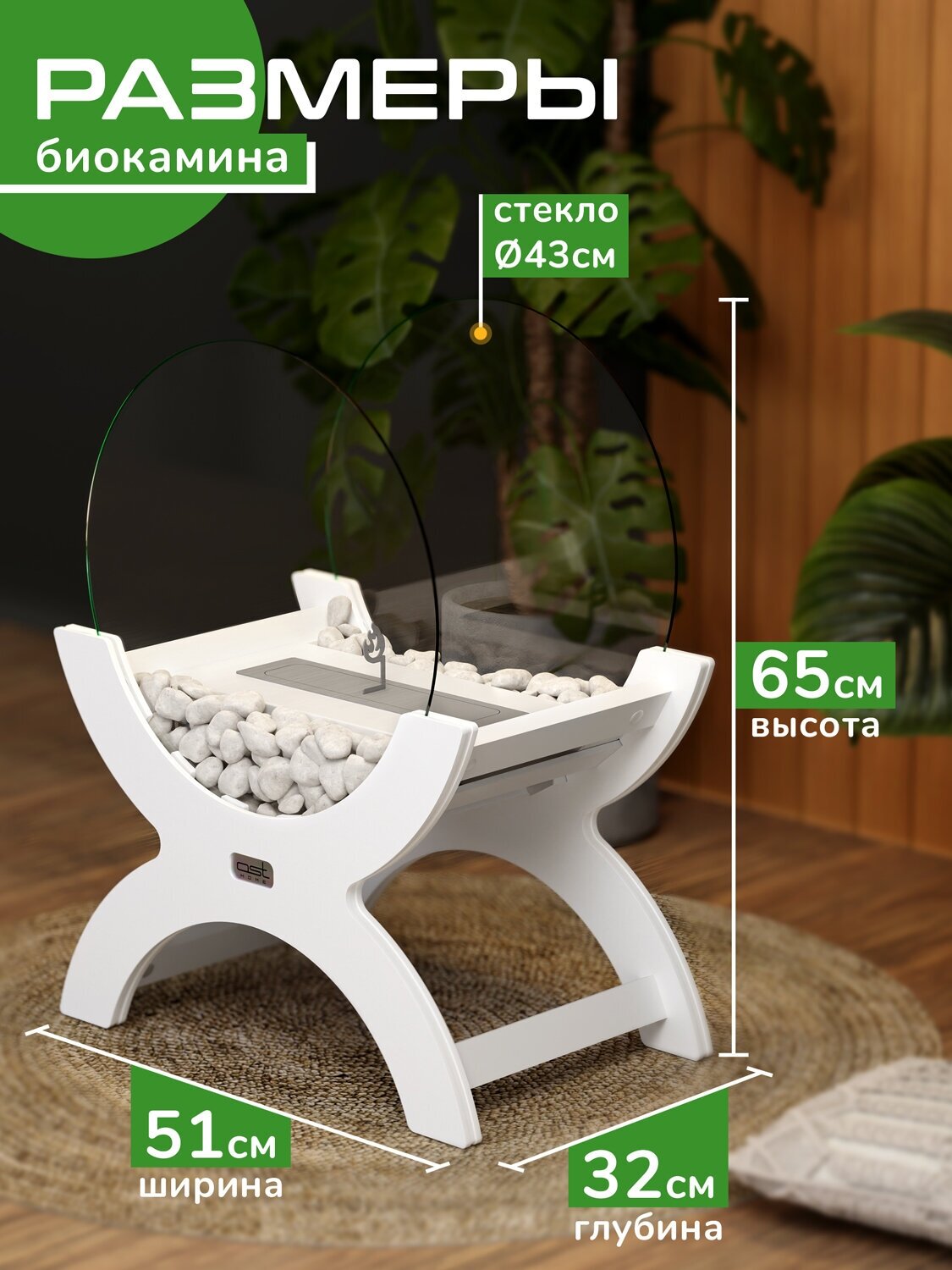 Биокамин с закаленными стеклами "Ethnic" 51*32*65 см , камин для дома напольный декоративный