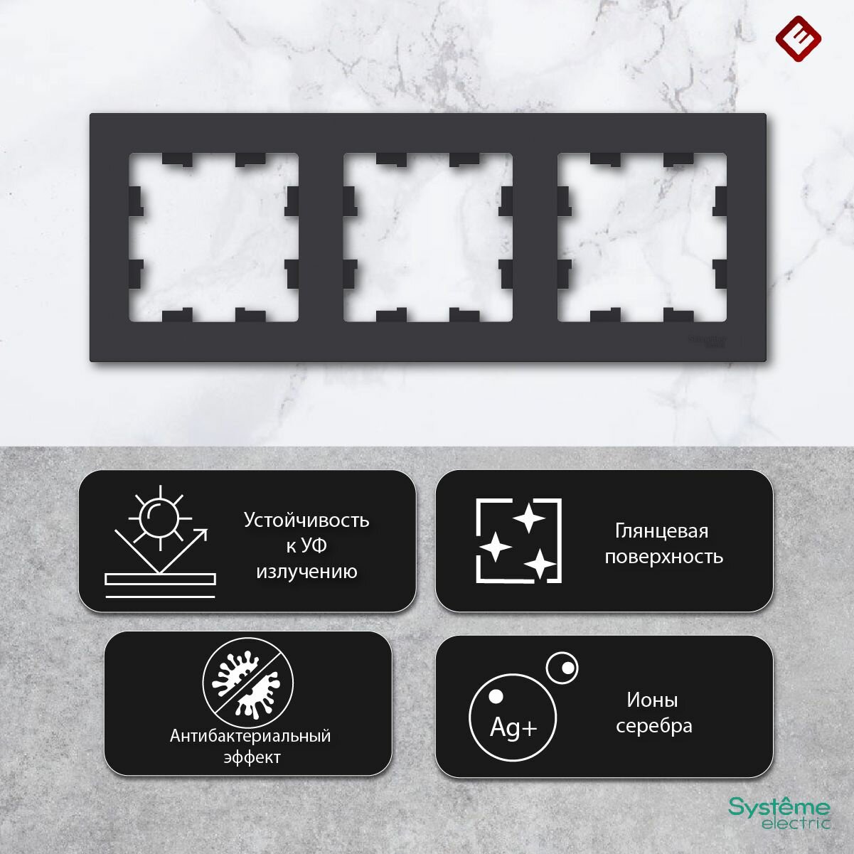 Рамка электроустановочная Systeme Electric (Schneider Electric) AtlasDesign, 3 пост., карбон, ATN001003