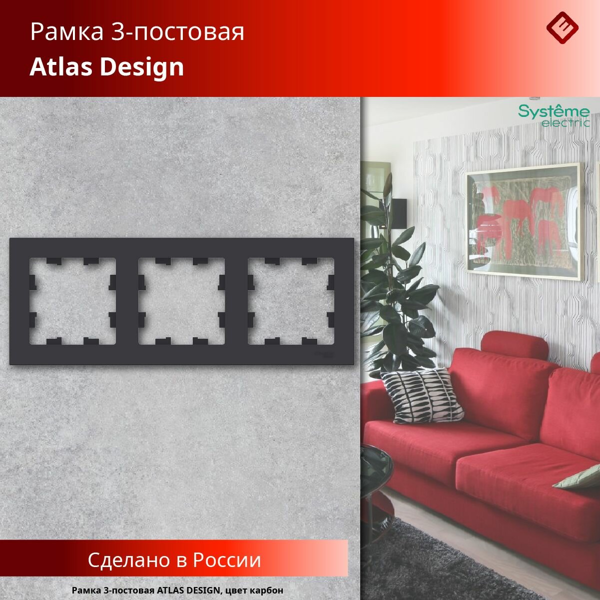 Рамка для розеток и выключателей трехпостовая (Карбон), Schneider Electric AtlasDesign информация: