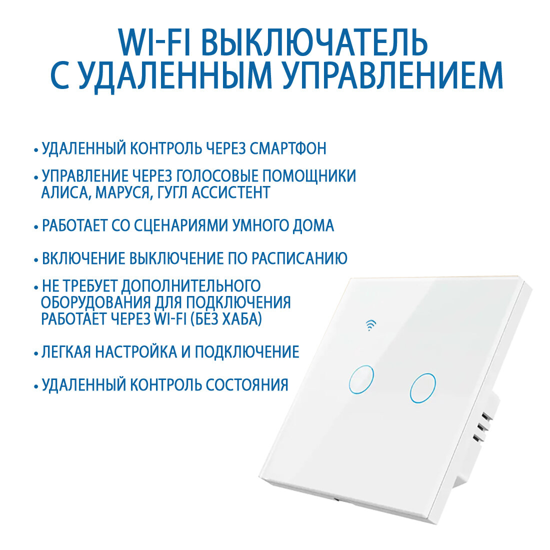 Умный сенсорный двухклавишный Wi-Fi выключатель с Алисой, белый информация: