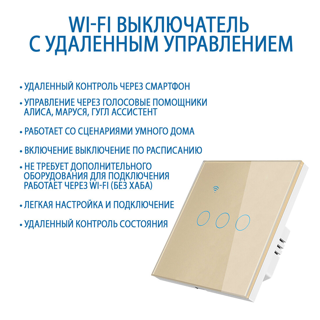 Отзывы на Умный сенсорный трехклавишный Wi-Fi выключатель с Алисой, золотой