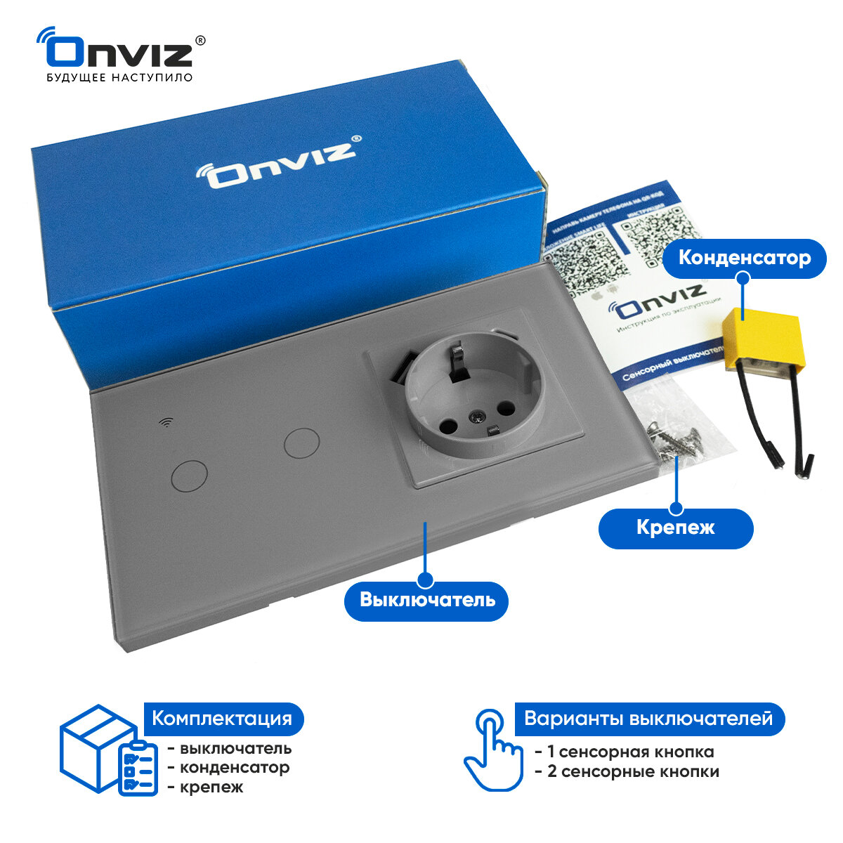 10 цен на Умный сенсорный Wi-Fi выключатель с Алисой (серый) 2хклавишный с розеткой USB Type-C, универсальный без нуля и с нулем