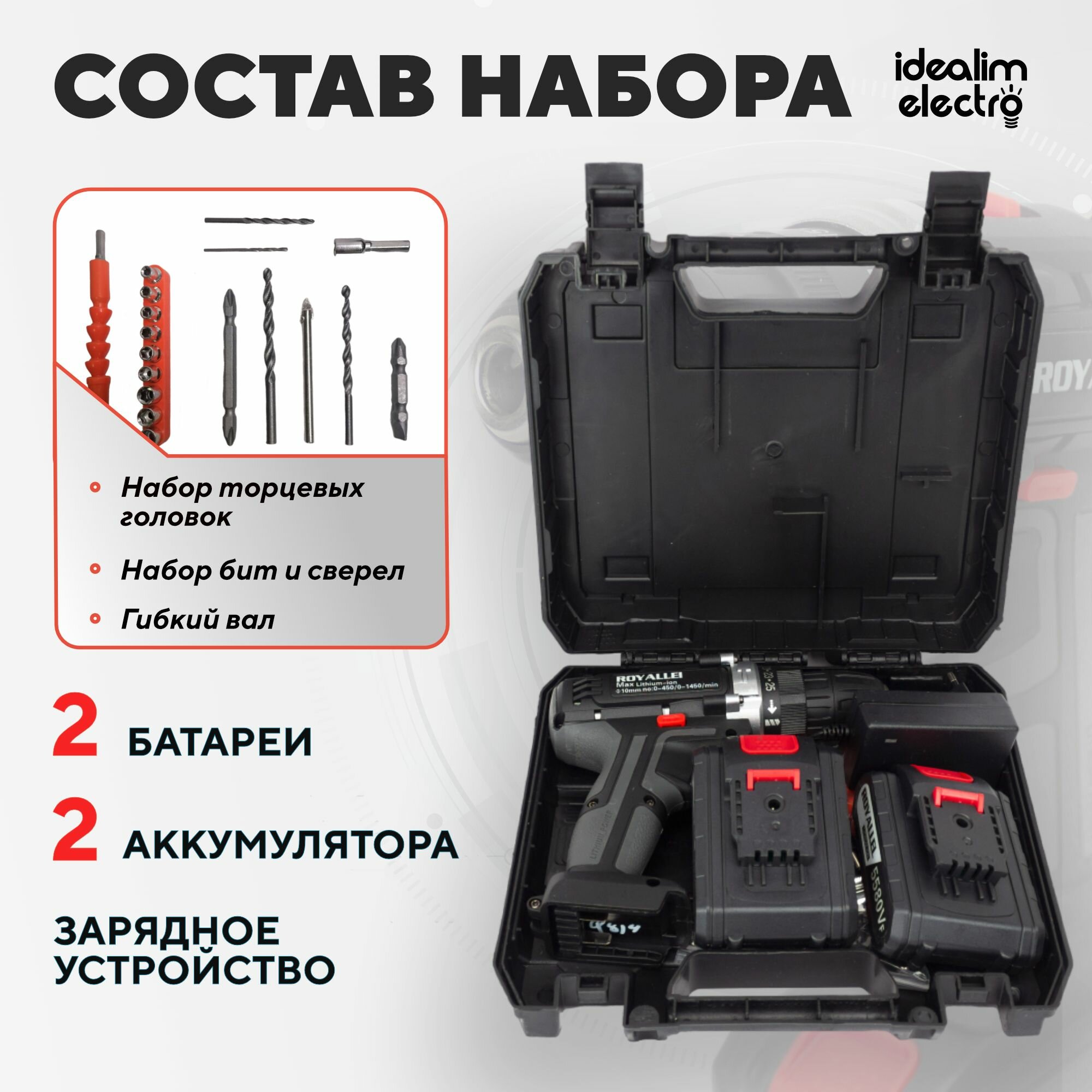 Дрель шуруповерт аккумуляторная 2 -21V , инструмент ручной строительный для сверления, закручивания, набор строительных инструментов 15 предметов в кейсе с двумя аккумуляторами 21в, с подсветкой 3 100 ₽
