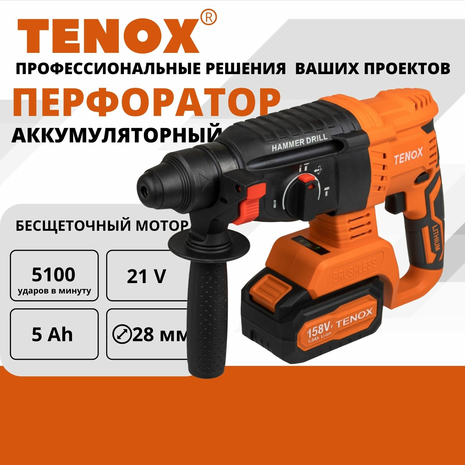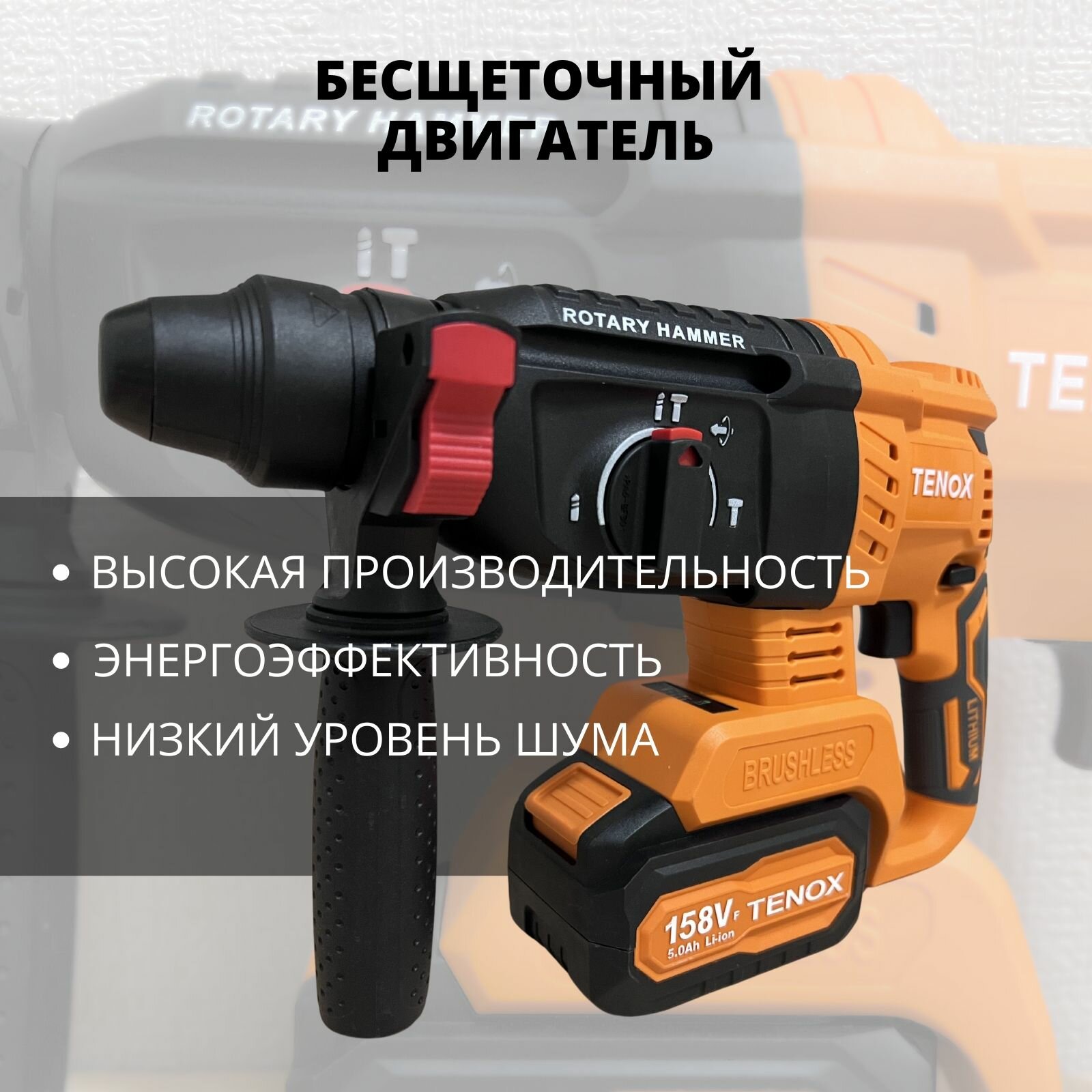 Отзывы на TENOX 158Vf Перфоратор аккумуляторный 21 В, 2,5 Дж, 2 АКБ LI-ION 5 Ач, SDS Plus, бесщеточный