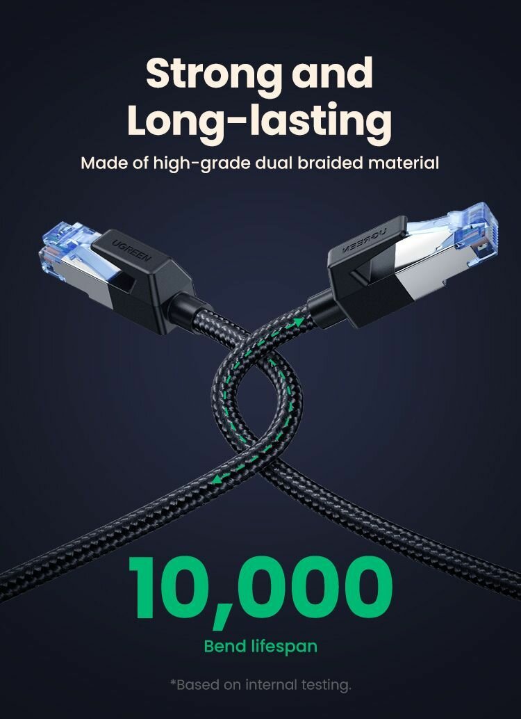 10 цен на Кабель UGREEN NW153 (80432) Cat8 CLASSF/ FTP Round Ethernet Cable With Braid. Длина: 3м. Цвет: черный