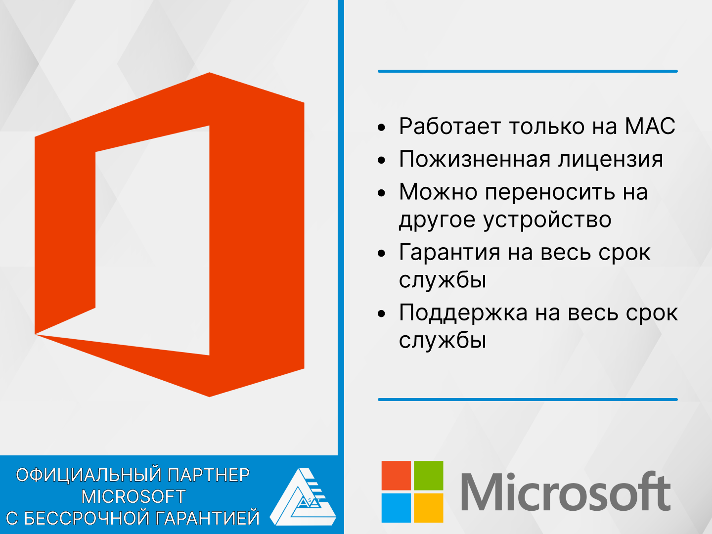 Microsoft Office 2016 для APPLE MAC / HB / WORD EXCEL Привязка к учетной записи (Русский язык)Лицензионный ключ информация: