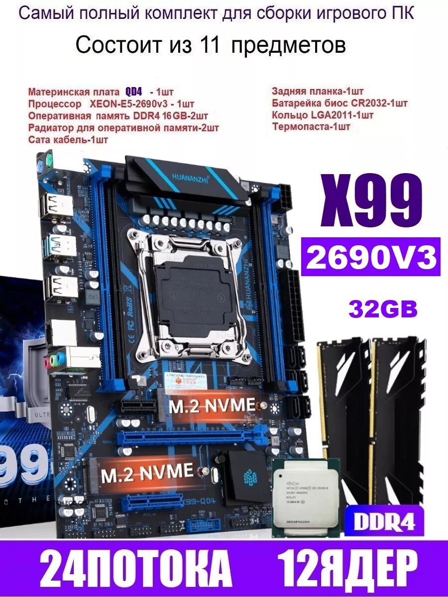 10 цен на Huananzhi Х99 QD4, комплект +XEON E5-2690v3+4x8gb DDR4