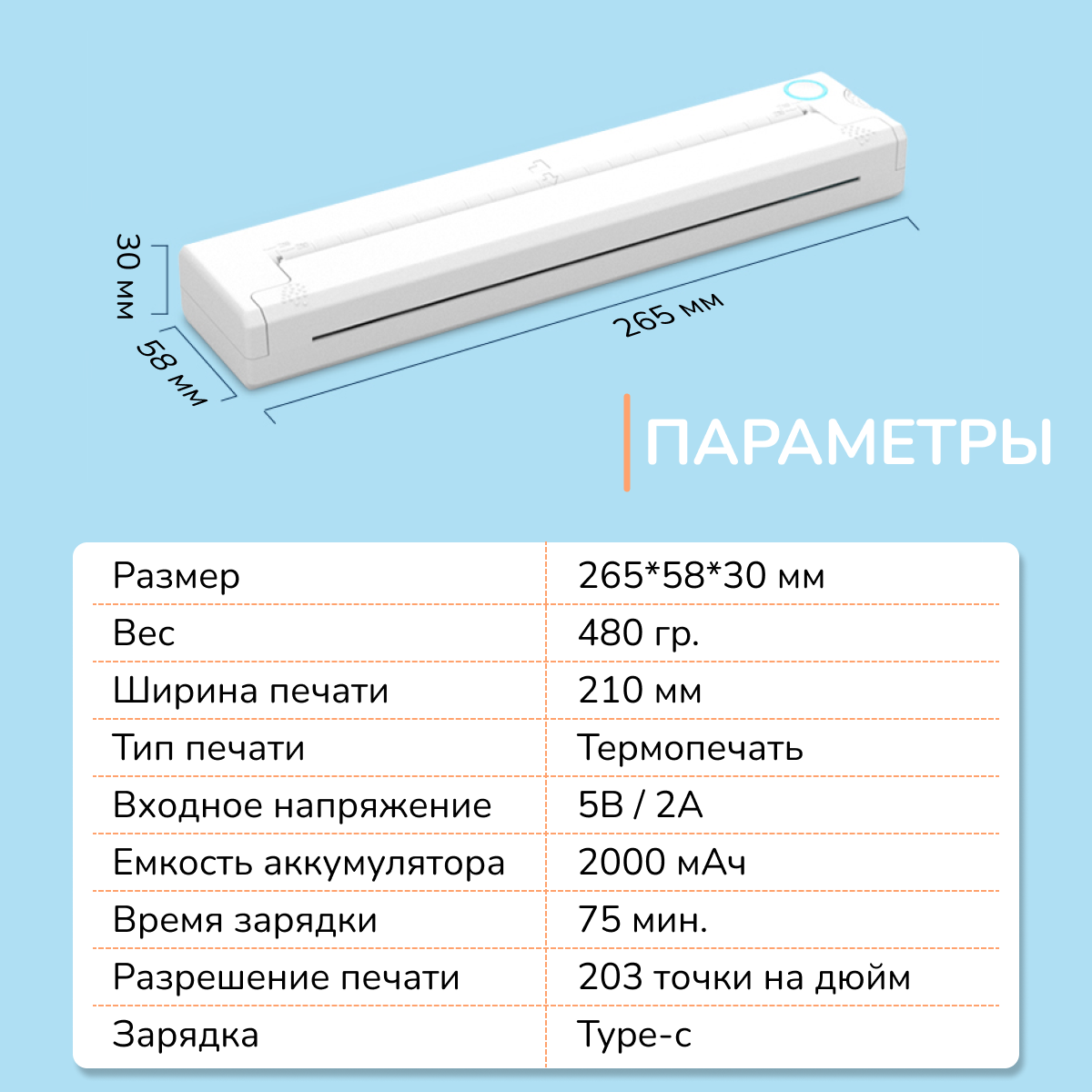 | Комплектация | Термопринтер - 1 шт. USB-кабель - 1 шт. Мешочек для хранения - 1 шт. |