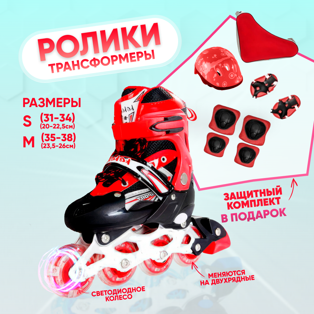 Ролики детские ДОМ ХИТ ДЕТИ, раздвижные трансформер с полным комплектом защиты, комфорт и безопасность, размер 35-38 2 988 ₽
