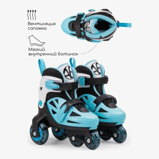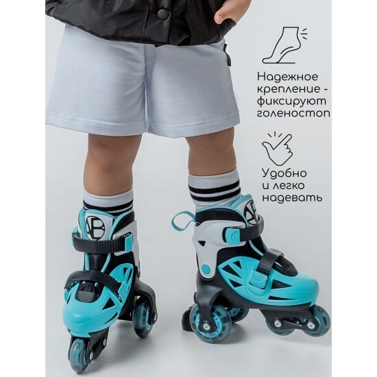 Роликовые коньки раздвижные Amarobaby Blow со светящимися колесами, черный/синий/серый, размер 29-32 информация: